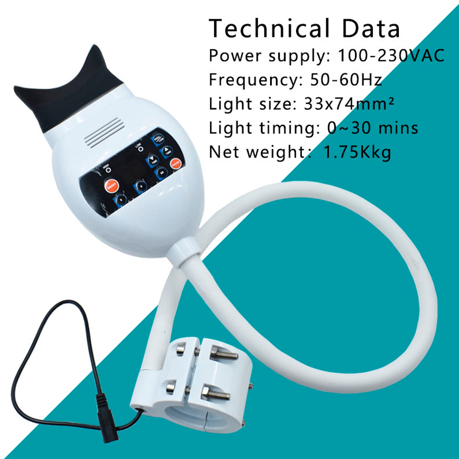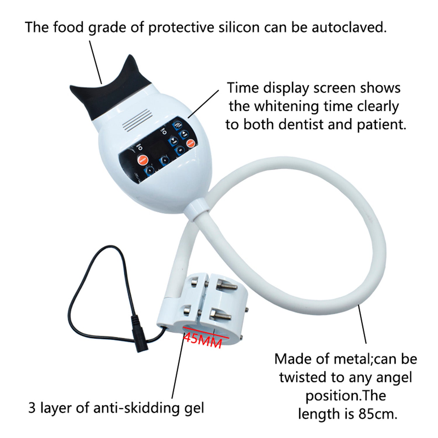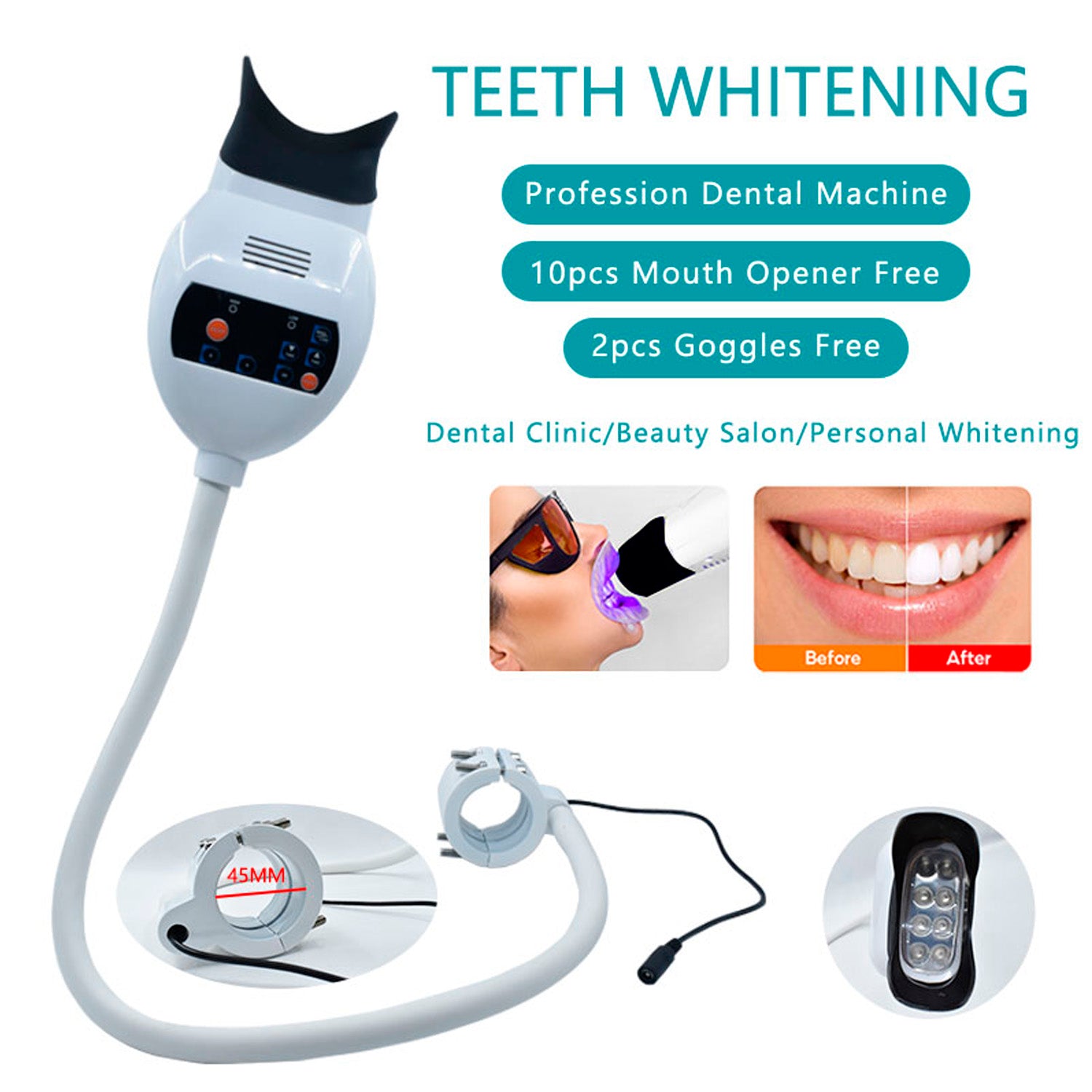 LED de alta potencia, temporizador ajustable de 0 a 30 minutos refrigerado por ventilador, adecuado para más marcas de gel blanqueador de dientes.