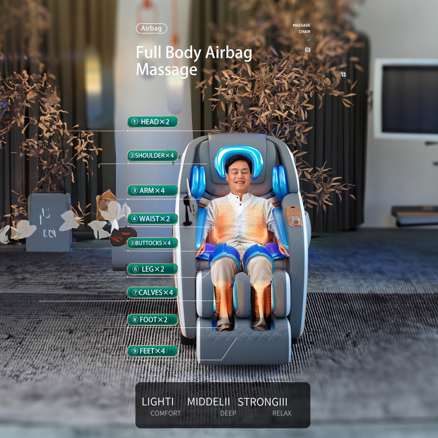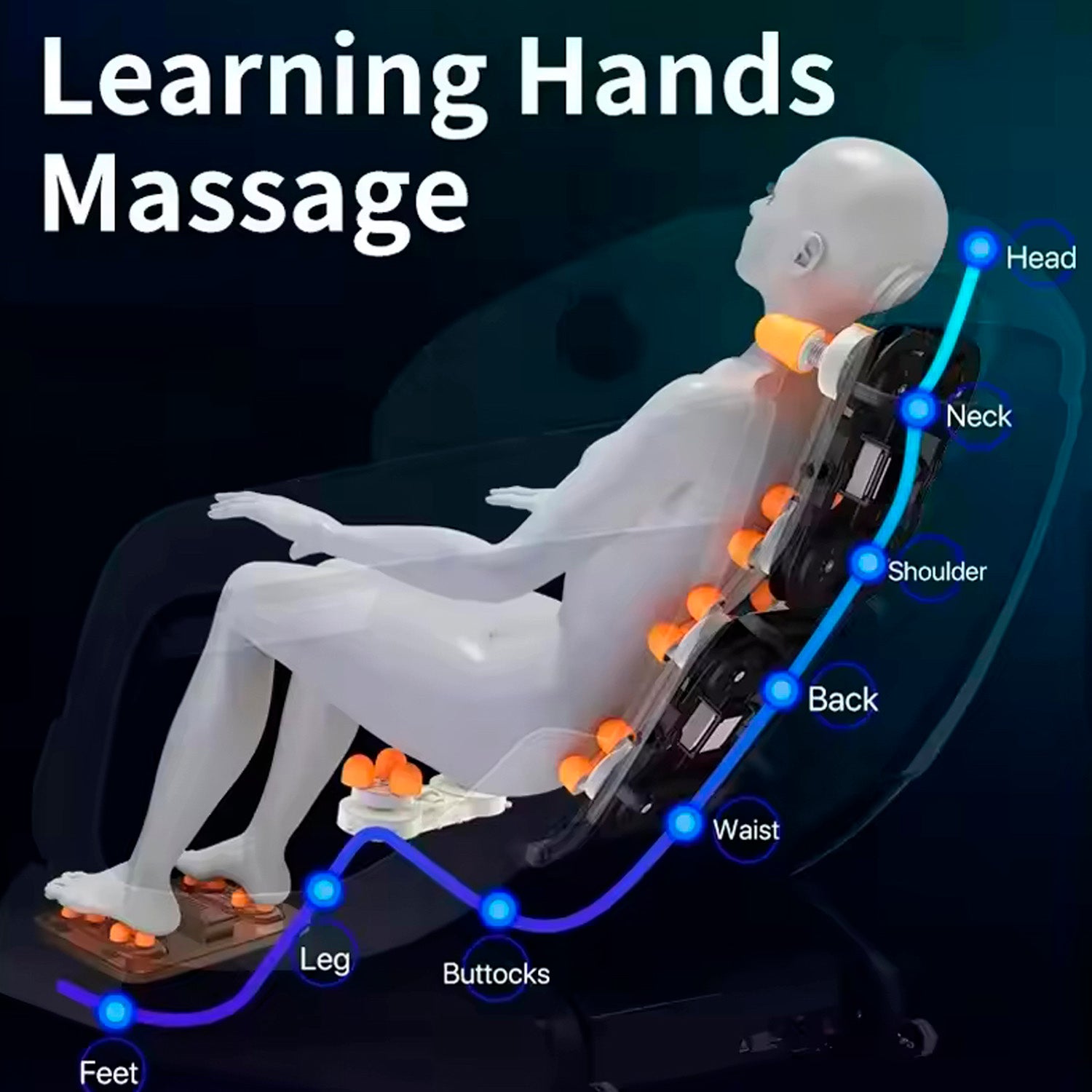 La silla de masaje con altos estándares de calidad cuenta con rodillos de masaje profesionales de diseño biónico. Estos masajes se realizan en diferentes partes del cuerpo como amasado de cuello, hombros, cintura y espalda, lo que hace que todo tu cuerpo tenga un descanso placentero.