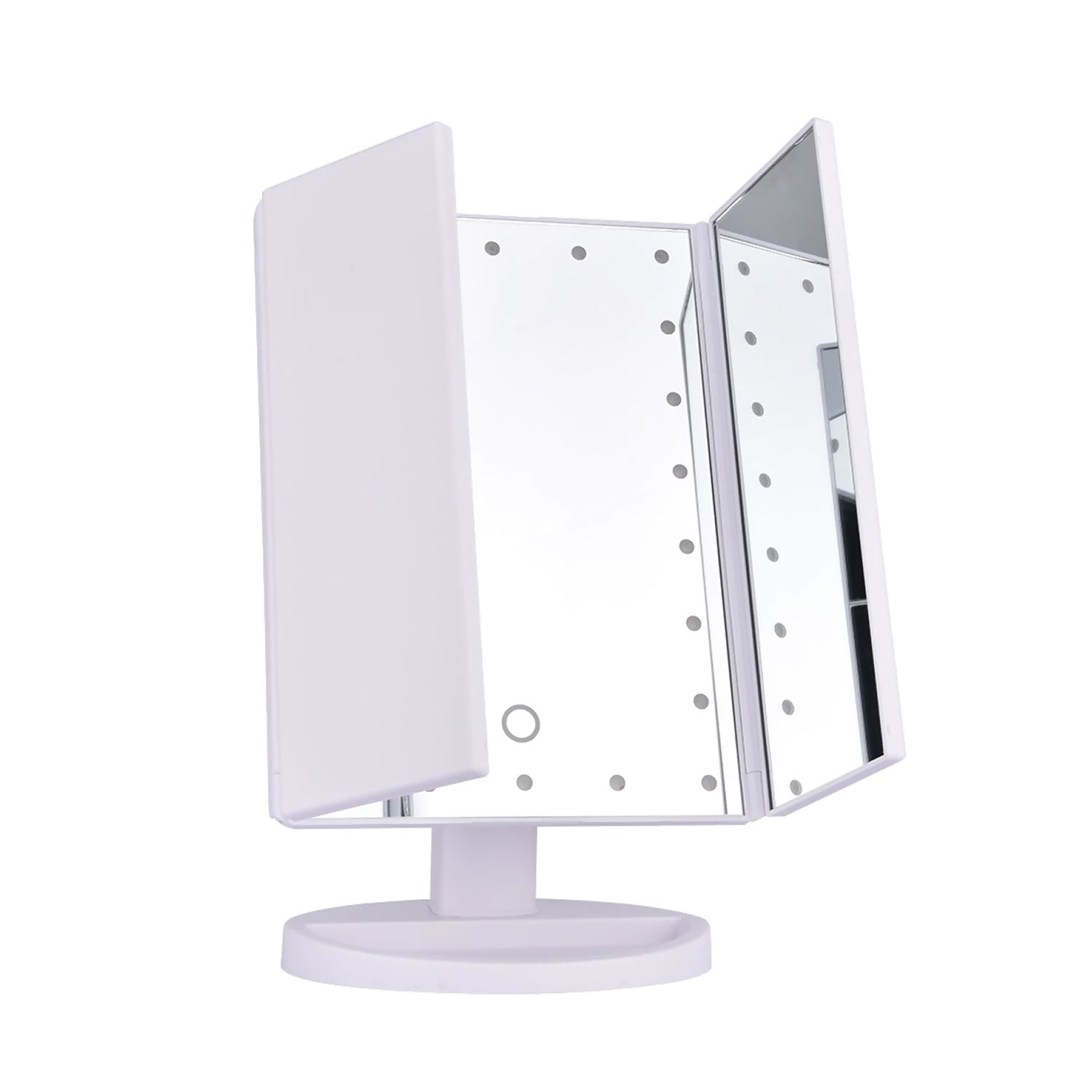 Espejo Portátil Maquillaje 3 Pliegue 24 Luz Led Tocador Usb