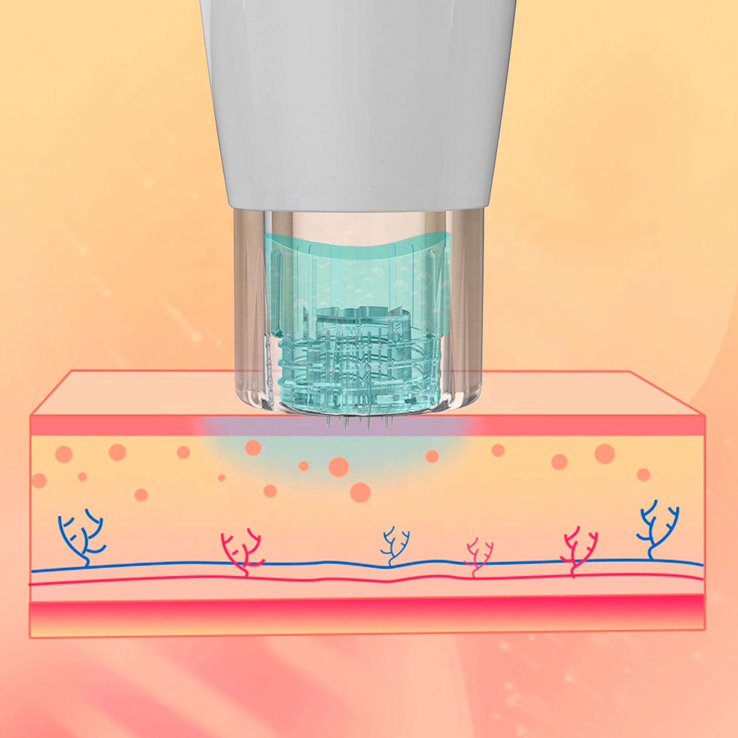 Diseño Integrado del hidrapen, la piel puede ser tratamiento con microagujas mientras se aplica la solucion de mesoterapia.