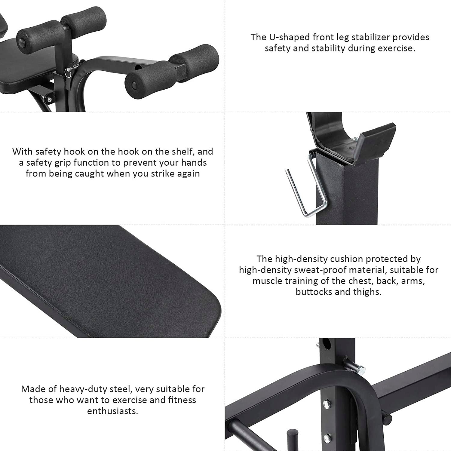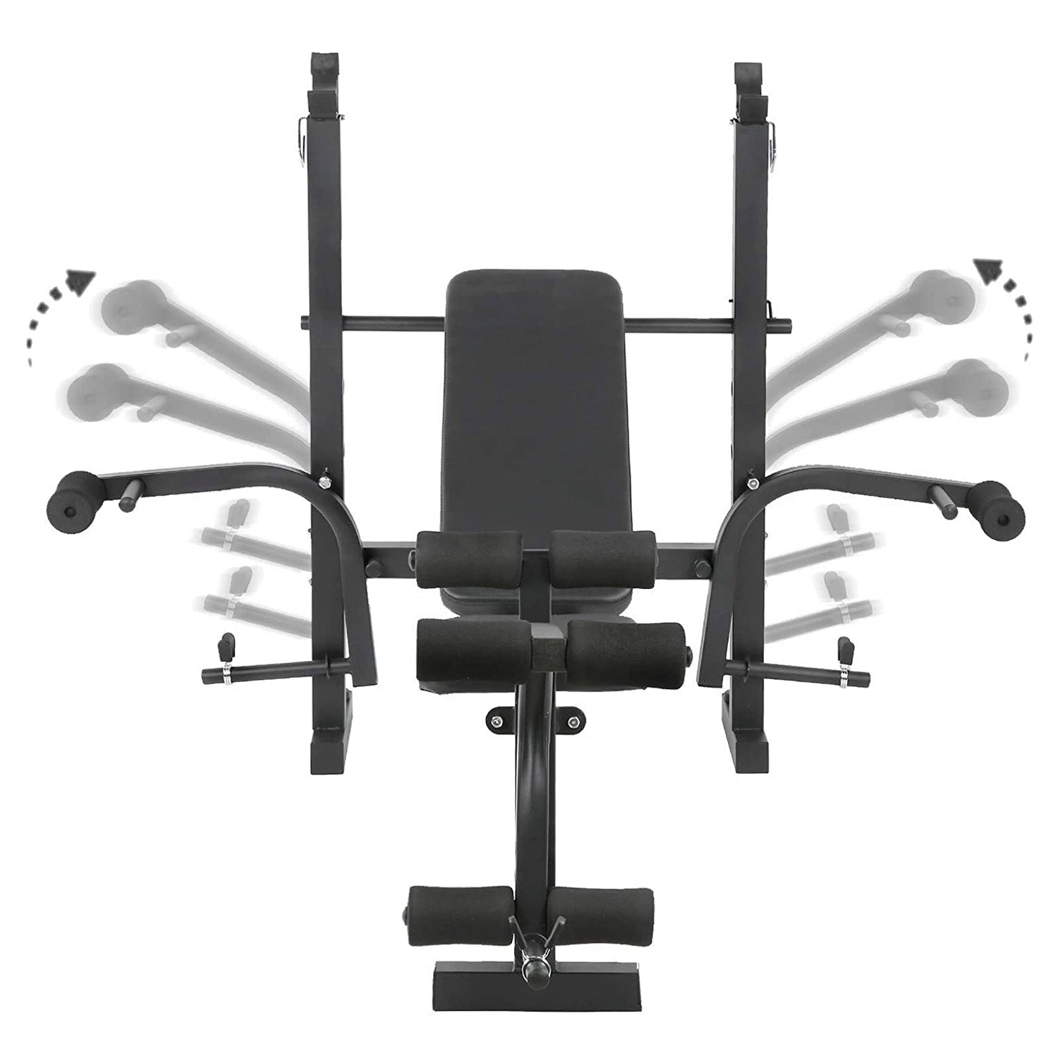 -¡Espectacular banca multifuncional con soporte para barras y mancuernas! Esta banca te brinda todo un entrenamiento completo sin tener que salir de casa, ya que te ofrece una variedad de opciones para personalizar tu entrenamiento y tonificar muchos músculos diferentes, tiene un diseño muy moderno y deportivo. Con las 2 barras de curl para brazos podrás trabajar de forma efectiva los músculos de los brazos, la espalda; también podrás trabajar la musculatura abdominal y las piernas, las podrás ejercitar con las barras de curl especiales para piernas, también puedes realizar press de banca y hasta sentadillas, este equipo te hará ver resultados en todas las partes de tu cuerpo. Es plegable, puedes guardarla en cualquier rincón de tu hogar al terminar tus ejercicios sin ocupar mucho espacio. Está fabricada con acero por lo cual es muy resistente. El asiento y el respaldo son acolchados para brindarte mayor soporte y comodidad durante el ejercicio, están tapizados en PU, antideslizante, fresco, respirable y muy fácil de limpiar. La banca cuenta con esponjas protectoras de EVA para mejor soporte de fuerza, seguras, cómodas y anti-sudor. Tiene además soportes antideslizantes en las bases de su estructura para mayor estabilidad durante el entrenamiento. Sin duda, será ¡el complemento perfecto para tú home gym!