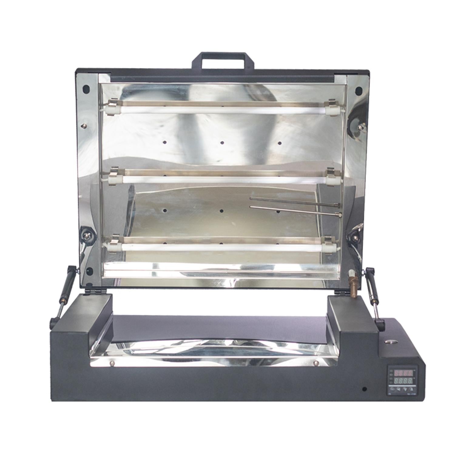 3. Coloque la película de PET en la máquina de transferencia de calor y hornea durante 5-7 minutos, hasta que el polvo termofusible se derrita, saque la película de PET.