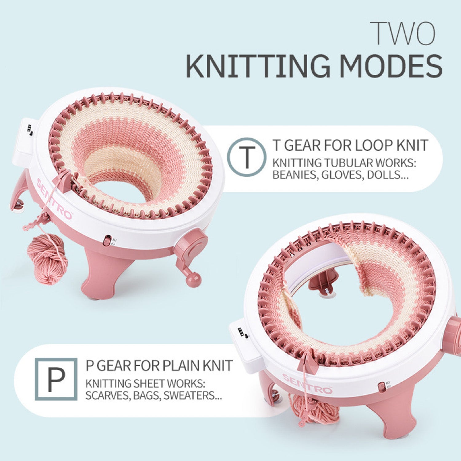 CARACTERÍSTICAS DE DISEÑO: Engranaje P de tejido liso: tejido liso, puede reducir el número de agujas. Puede ser bufanda, bolso, suéter, almohada, ropa, etc; T-gear para hacer punto circular: tejido circular, número de aguja fijo. Puede ser sombreros de punto, guantes, muñecas de tela, etc.