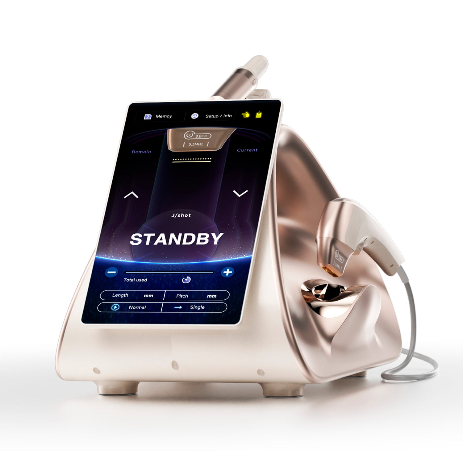 Ultrasonido HIFU MPT es más seguro, más rápido, más efectivo, avanzado y único. Uno de los principales diferenciadores de MPT es que maximiza la eficacia del MMFU dividiendo el método de generación del punto de coagulación en 4 modos de emisión diferentes, tales como modo Normal, Micropulso, Circular y Microcircular, Incluye 3 Manipulos, uno de ello en 360° (ultra booster) y 10 Transductores.