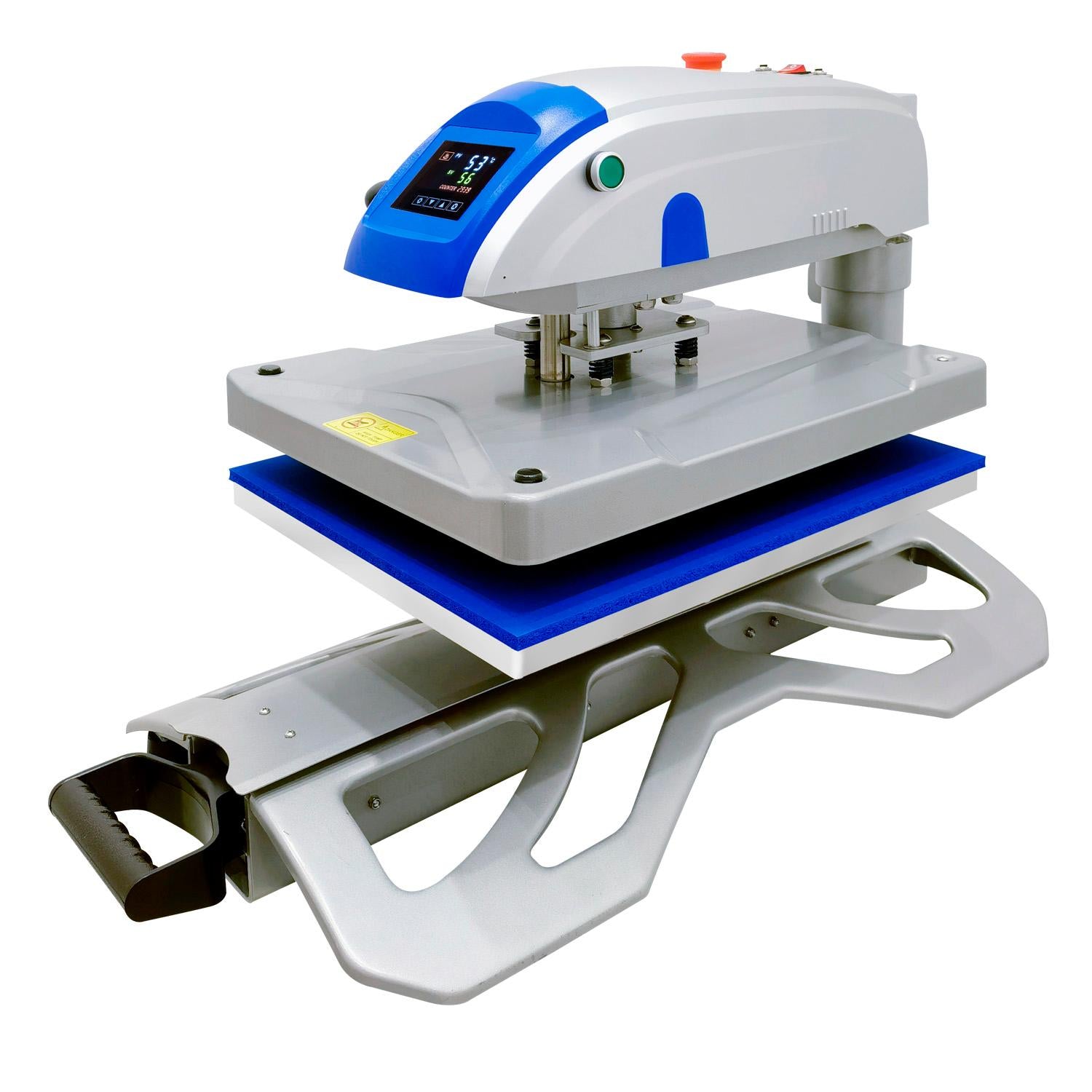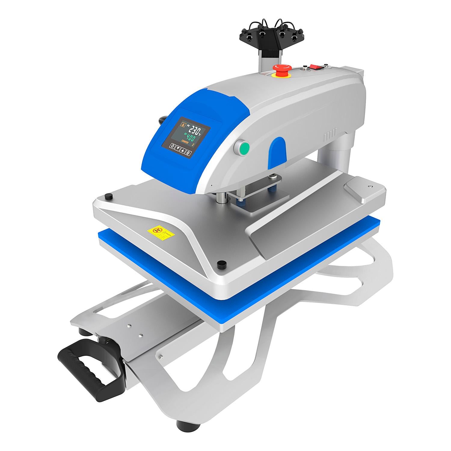 La plancha térmica de nivel Deluxe incluye el brazo oscilante y simplemente desplaza la placa calefactora y deja espacio suficiente para cargar los artículos. Además, es operado por un sistema de bloqueo con mecanismo de palanca destacado y genera un máximo de 330kg, se refiere a la fácil aplicación para cualquier papel de transferencia láser sin cortar. Además, el mecanismo de características es muy fácil de levantar el mango durante la operación.