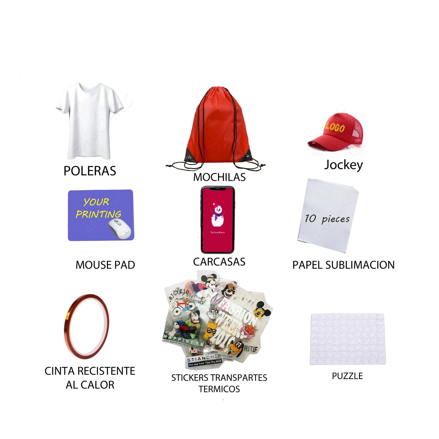 Pack Sublimadora 15 en 1 + Jockey + Poleras + Polerones + Tazas