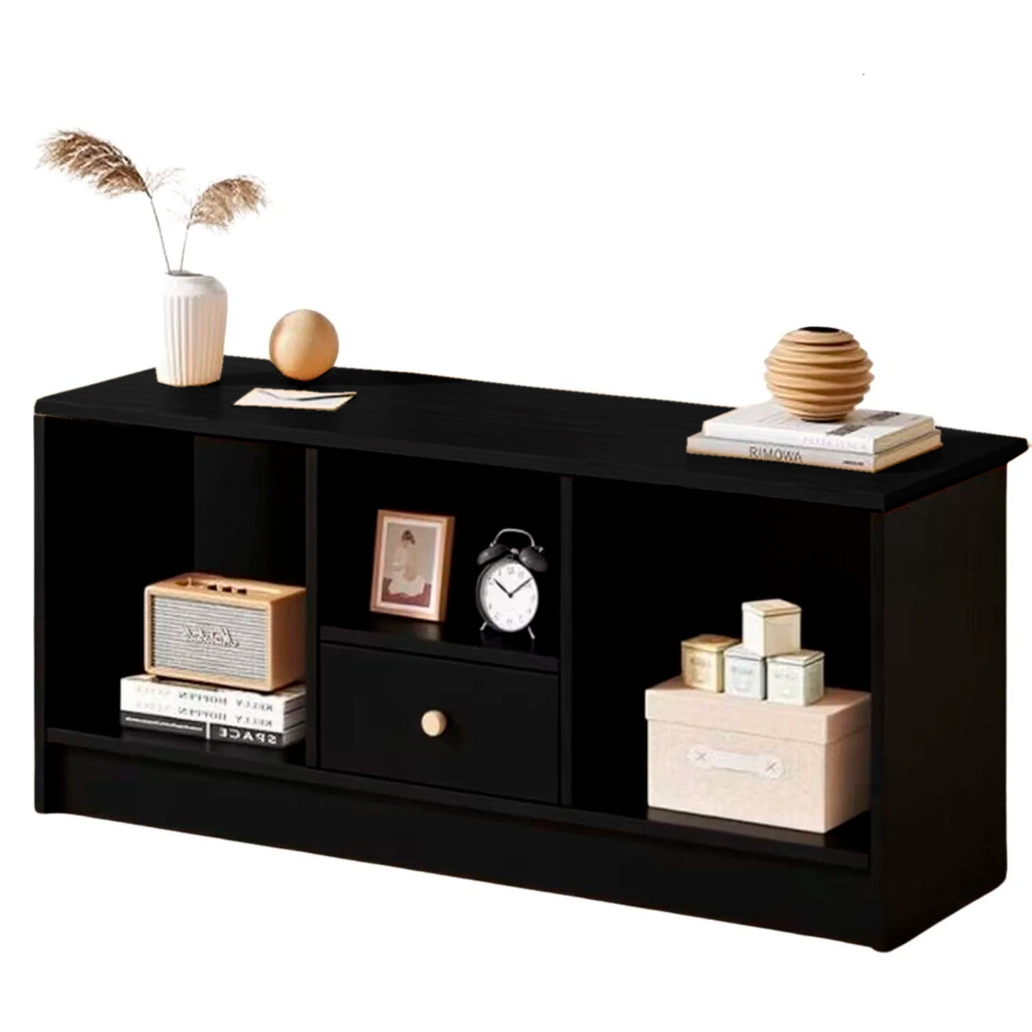 Gran capacidad de almacenamiento: la espaciosa encimera se puede utilizar para colocar televisores, plantas verdes, decoraciones, etc. Hay compartimentos abiertos y cajones en la parte inferior, que son convenientes para guardar libros, controles remotos, artículos diversos, etc., haciendo que la sala de estar esté ordenada.