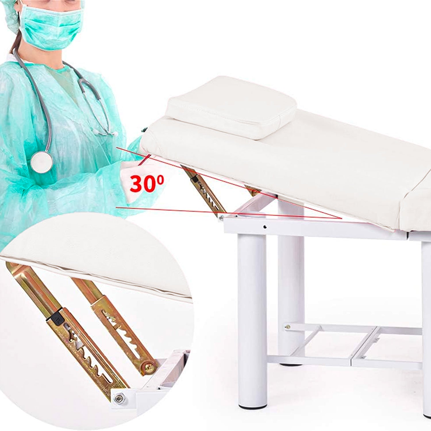 Respaldo ajustable en diferentes posiciones, espacio inferior para almacenamiento y superficie fácilmente lavable, es una camilla fija muy funcional y perfecta para ser usada en diferentes tipos de situaciones.