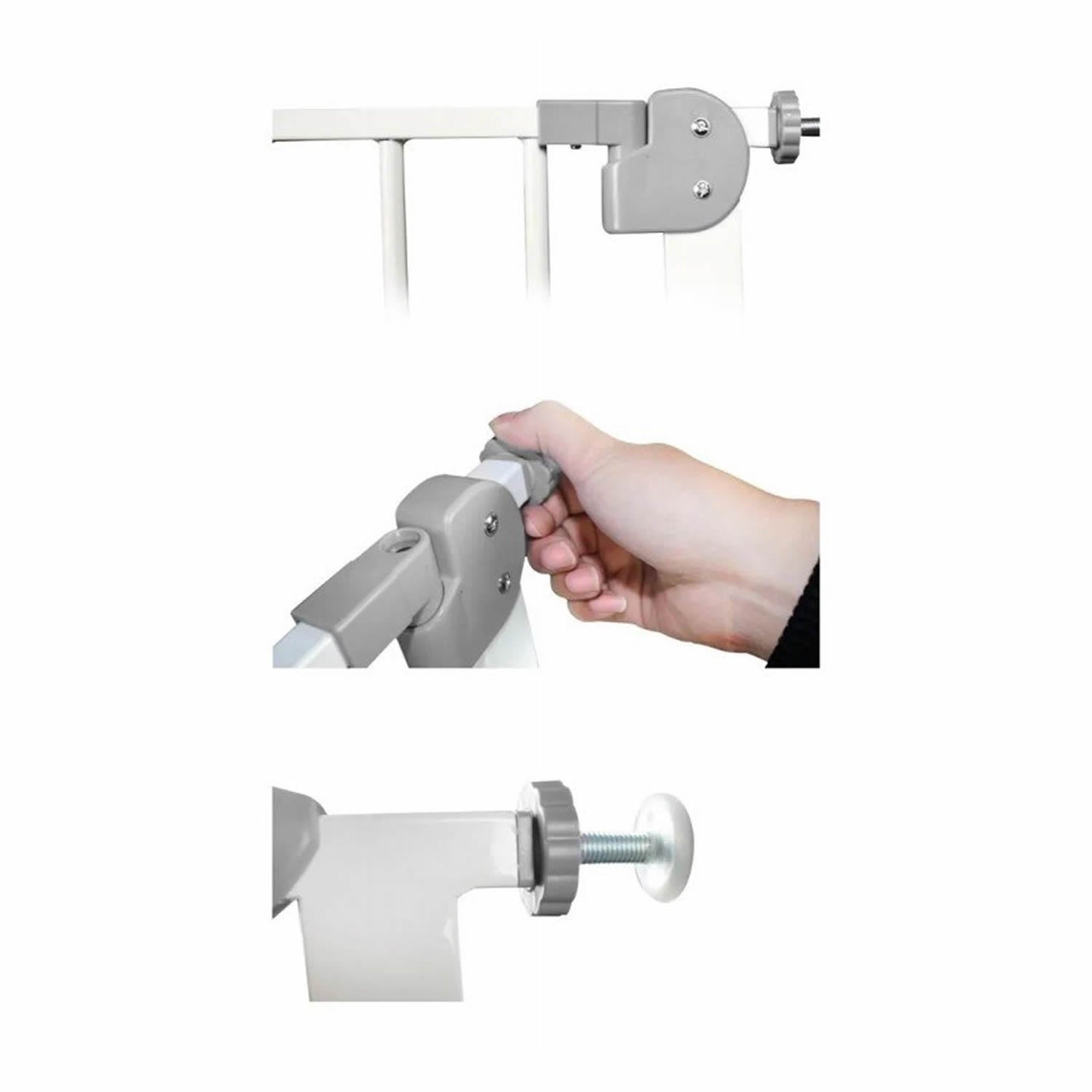 - Barrera versátil: es perfecta para puertas, pasillos, escaleras, cocinas, lavaderos, dormitorios y salas de juegos. La puerta se puede quitar rápidamente de la abertura. La barrera es regulable: de 70 a 85 cm. Máxima calidad a un precio imperdible.