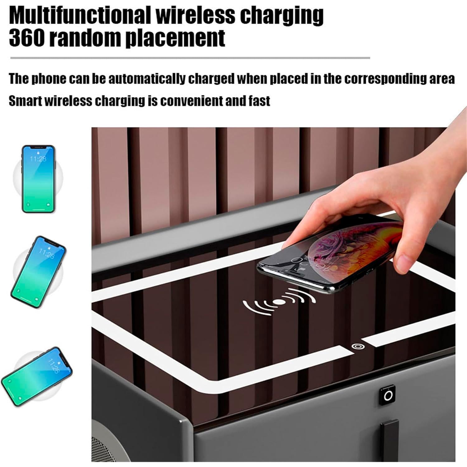 Escritorio inteligente con bloqueo de huellas dactilares: la función de desbloqueo de huellas dactilares de la mesita de noche proporciona una protección efectiva al grabar tu huella digital, asegurando que solo tú puedas abrirla. También aprende sus hábitos de uso y sigue mejorando la tasa de aprobación cada vez que lo desbloquea, haciéndolo aún más inteligente.