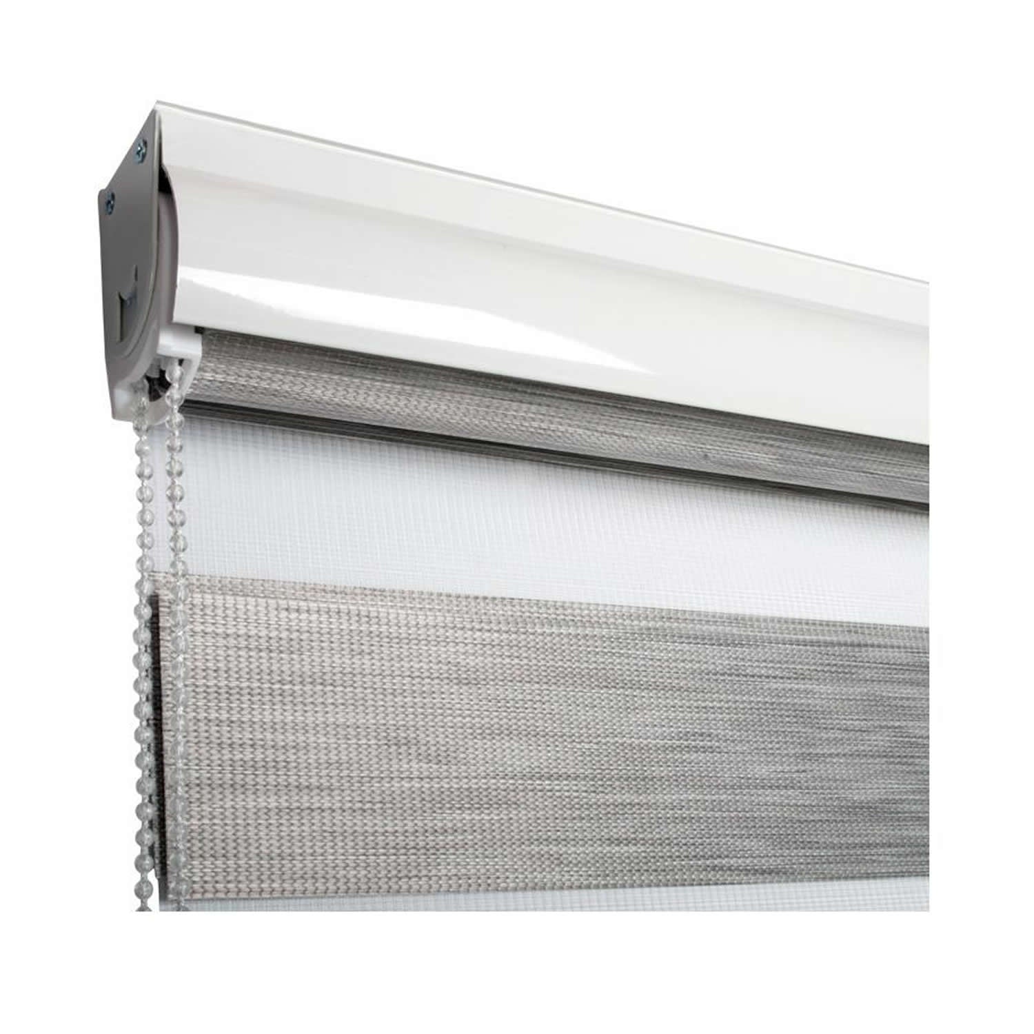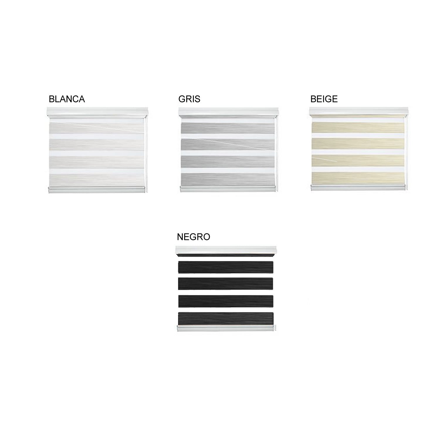 Tela duo, 100%poliéster, 200cm de alto, peso: 115 Gr/m2, apertura de luz 15%