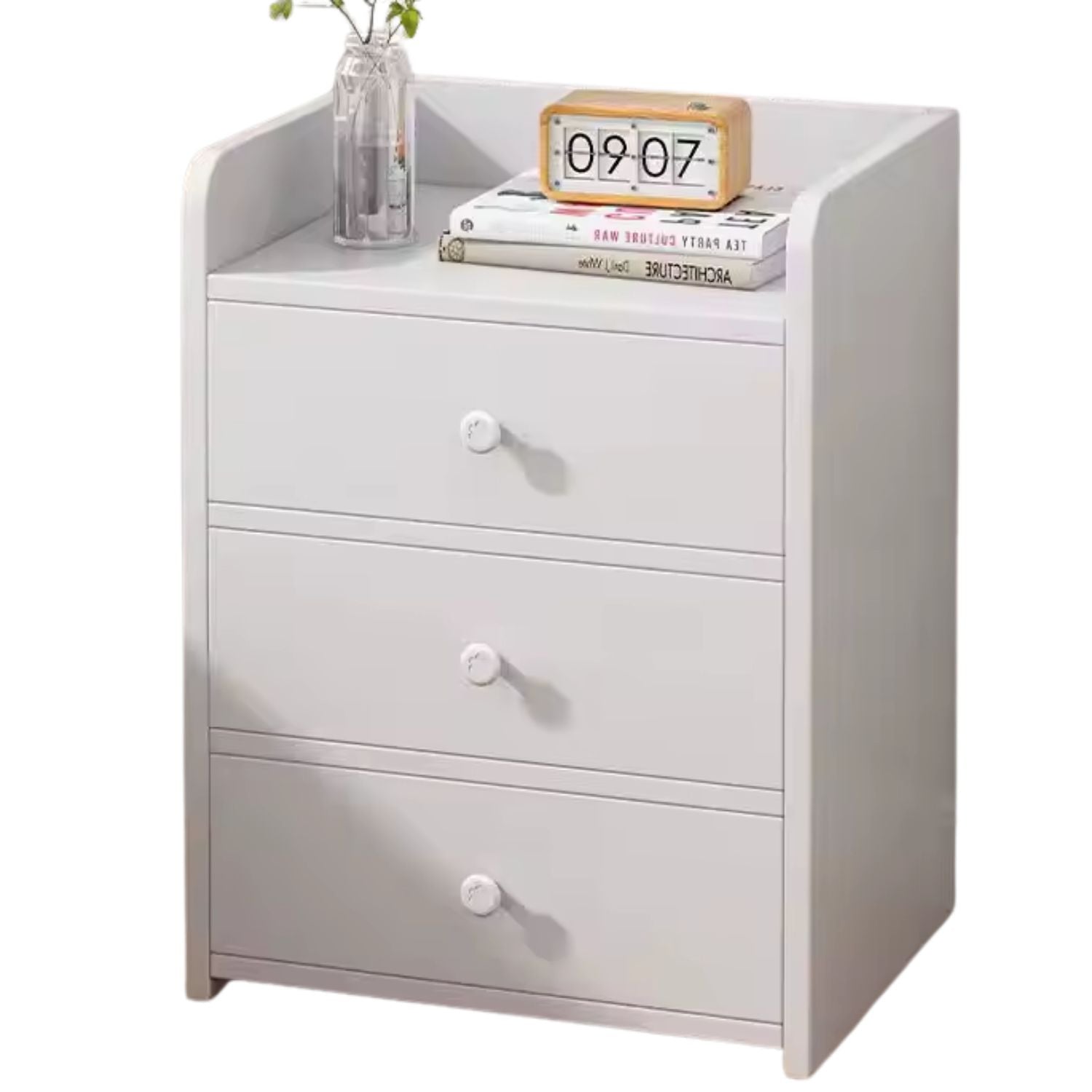 Nuestra mesita de noche con cajones ofrece un amplio almacenamiento dentro de un marco elegante. Dimensiones: 35*28*48cm. Cada cajón, soporta 13 libras, y un estante superior con capacidad para 35 libras, proporciona un amplio espacio para libros, relojes y lámparas.