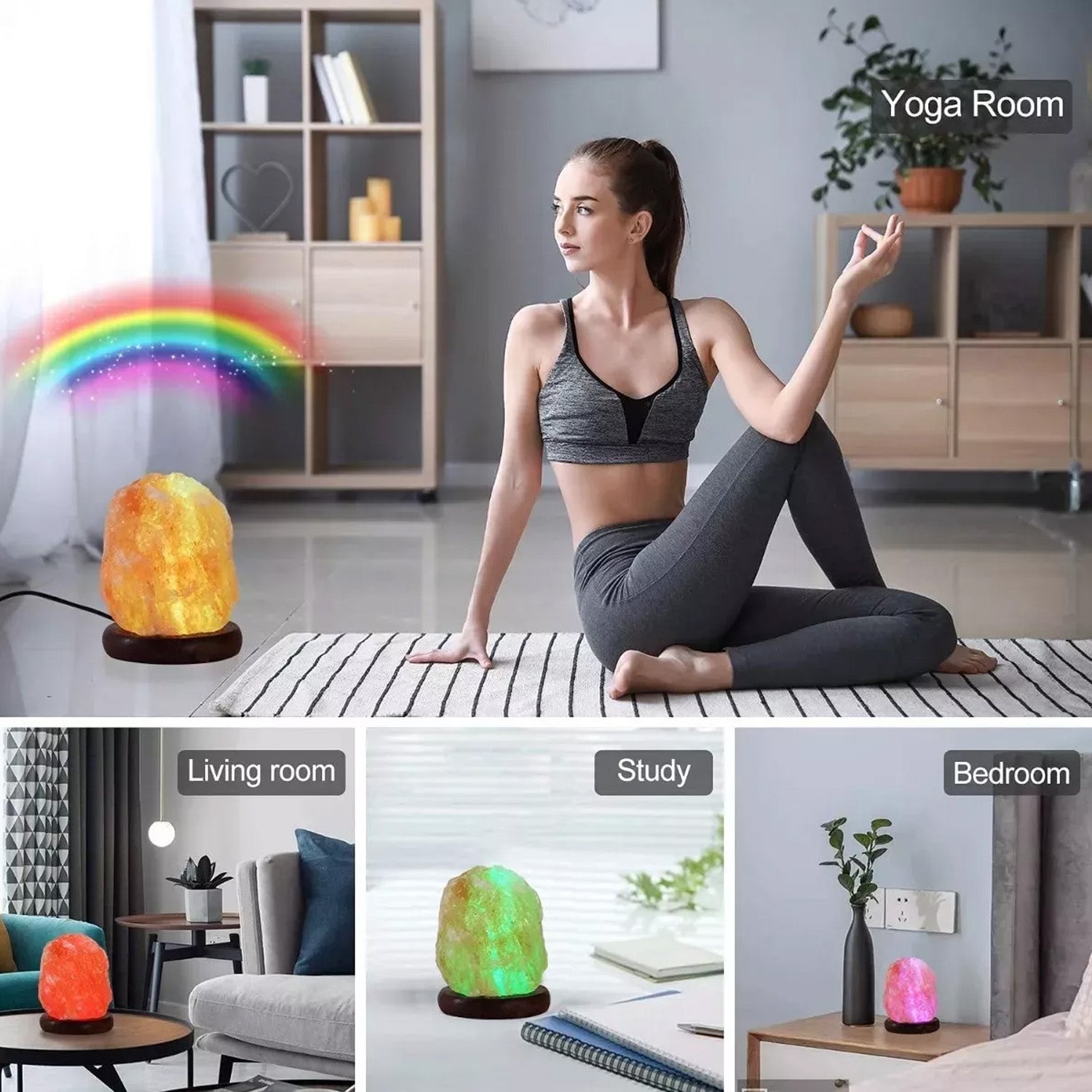 - La lámpara de sal que cambia de color es perfecta para la decoración del hogar y la oficina. Ideal para meditación, espacios de yoga, una luz de noche o en tu mesita de noche. Las luces pacíficas y suaves ayudan a aliviar la presión física y mental. Rocas de sal extraídas a mano y hechas a mano con un trabajo manual exquisito. Una de las minilámparas de sal relajantes, calmantes y saludables más populares y de moda.
