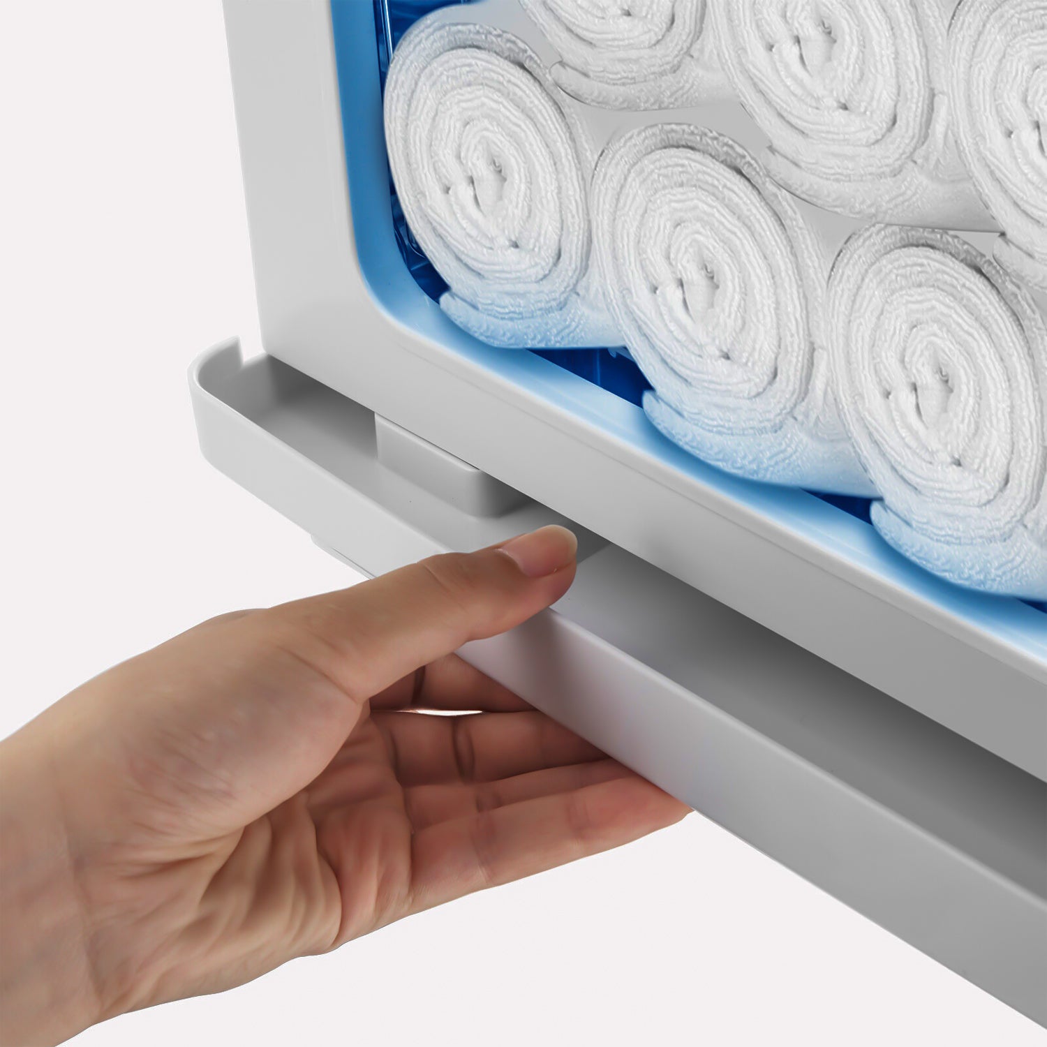 Calentador de Toallas White. Práctico y fácil de utilizar. Su función esterilizadora elimina las bacterias y microorganismos de las toallas para una máxima higiene.