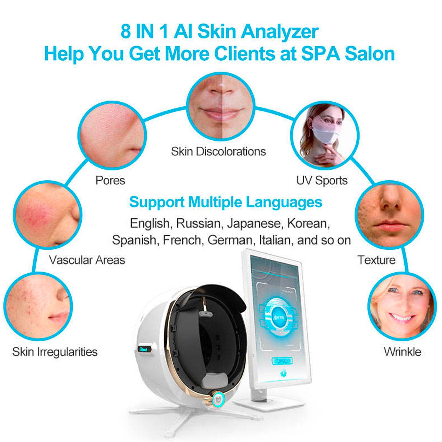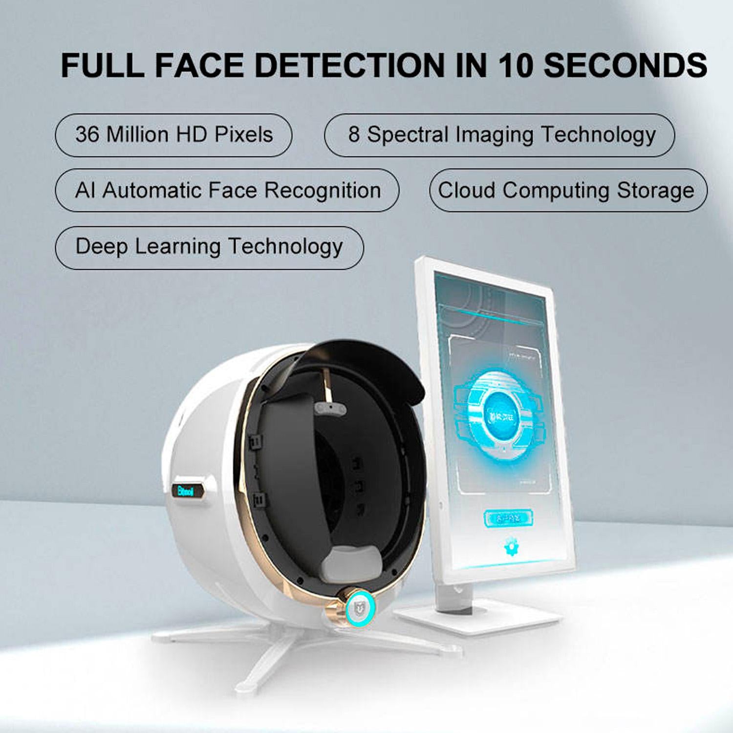 faciales, análisis cuantitativo de las cuatro problemáticas de la piel, esta tecnología de aprendizaje profundo, combinan una gran base de datos, identifica y analiza con precisión todo tipo de problemas de la piel.