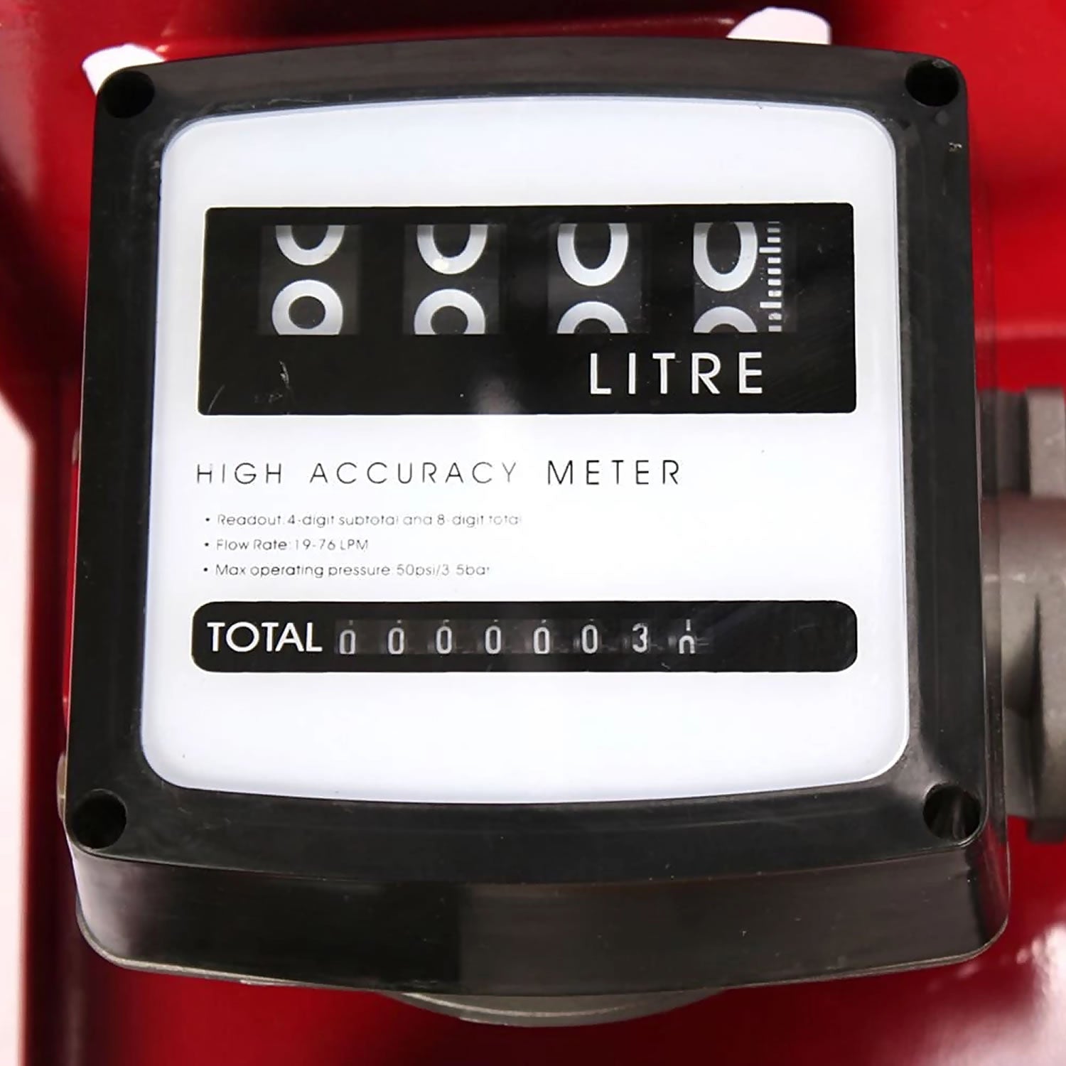 El kit incluye un medidor de flujo integrado. Este caudalímetro mecánico se utiliza para medir la cantidad exacta del combustible dispensado. Es fiable, económico, fácil de instalar y simple. Los dígitos grandes hacen que leer el medidor sea una tarea fácil.