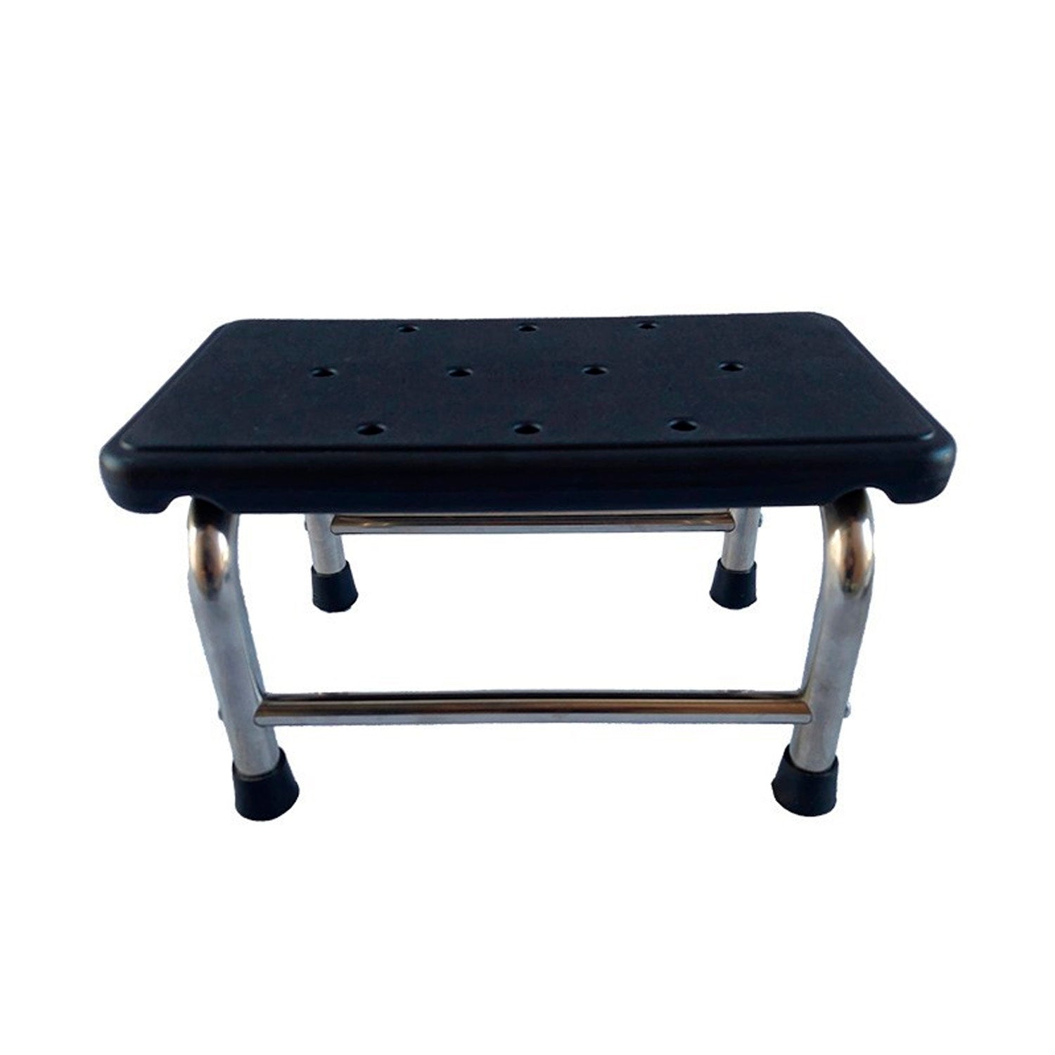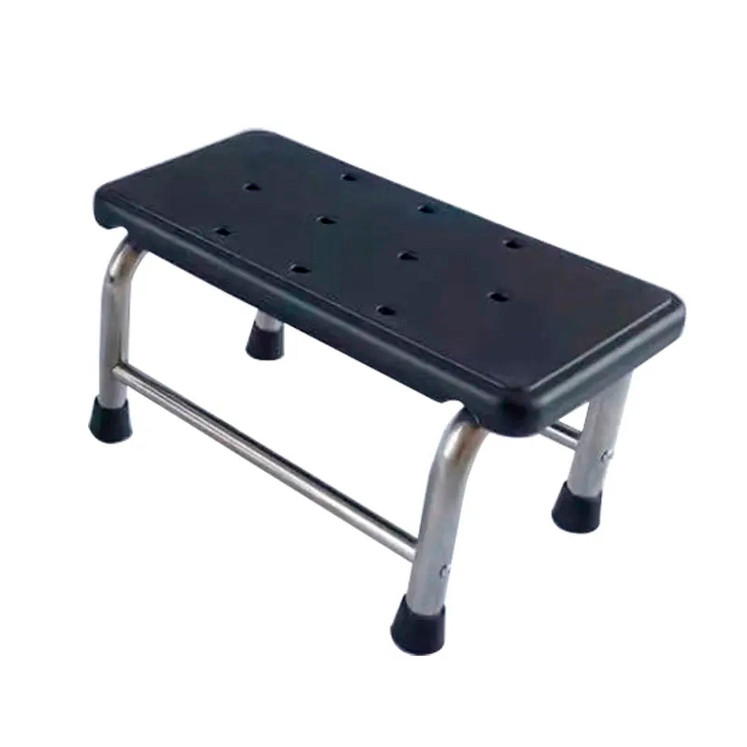 Escabel metálico con Peldaño de goma antideslizante multiuso fundamental para ambientes hospitalarios, consultas medicas o para uso hogareño.