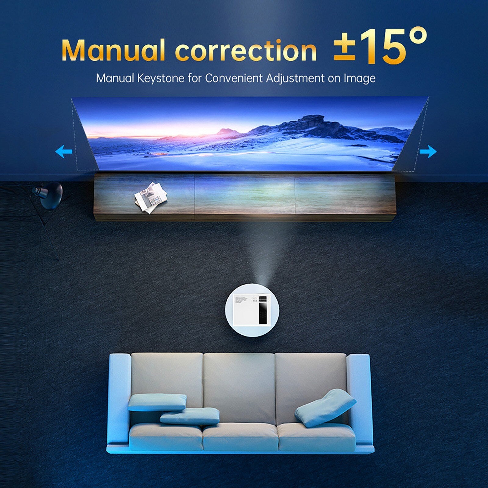 - Corrección trapezoidal y enfoque manual: La corrección trapezoidal de ±15 grados verticalmente y el enfoque se pueden ajustar manualmente, el zoom del 75 % al 100 % le permite ajustar la claridad y el tamaño de la pantalla más fácilmente. Puede instalar este proyector doméstico de varias maneras, como en un elevador o utilizando un trípode. Cualquier método de instalación puede satisfacer sus necesidades.