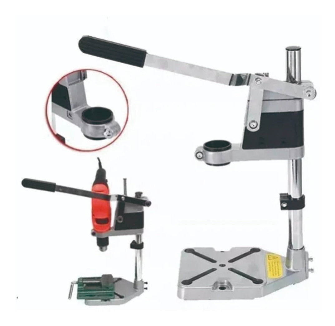 - Características: este soporte para taladro es ideal para sujetar tu taladro estable durante el uso y permite una perforación mucho más precisa que la operación manual.
