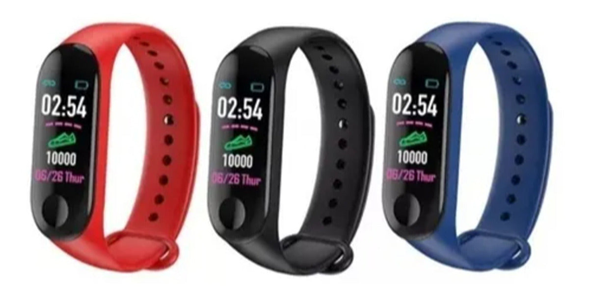 Reloj Smart Band inteligente modelo M3, este cuenta con lector de ritmo cardiaco, calorias quemadas, contador de pasos, oxigeno en la sangre, Busqueda de Smartphone, Hora y fecha, puedes leer los mensajes de tu Smartphone, vibracion. Producto de gran calidad.