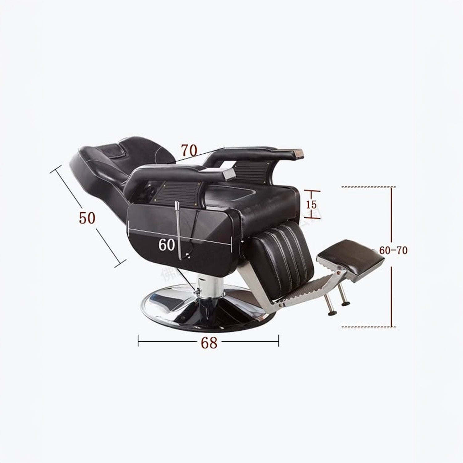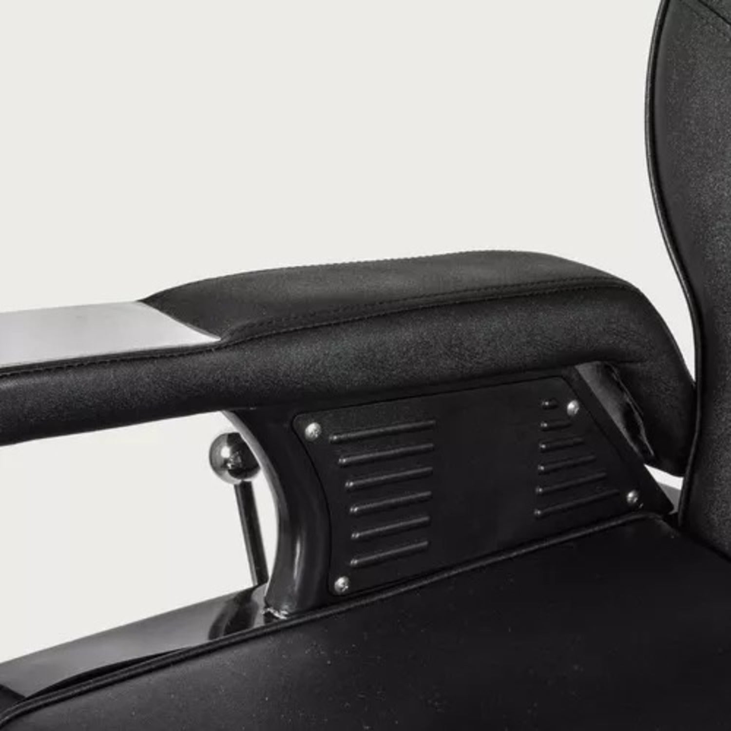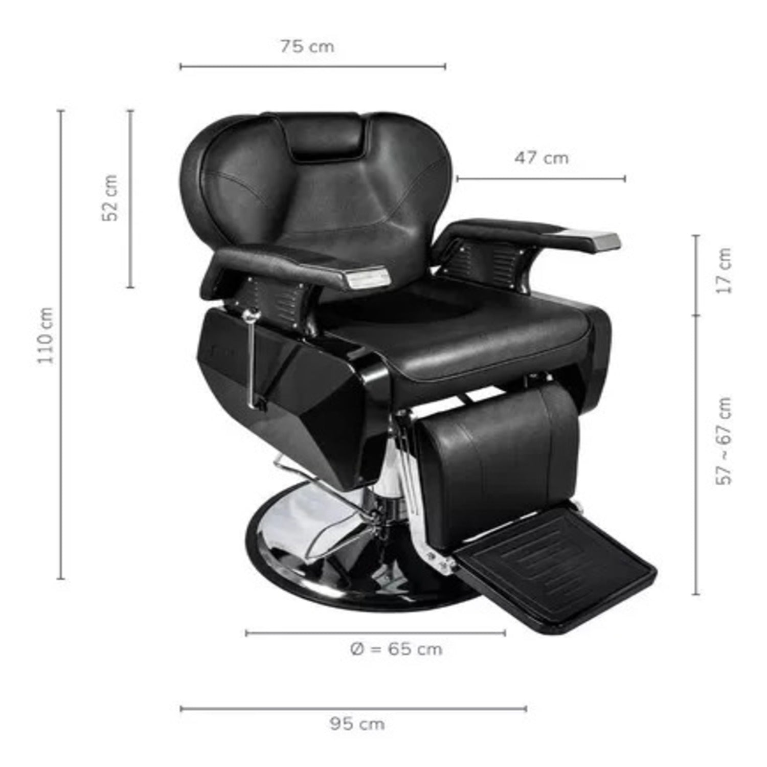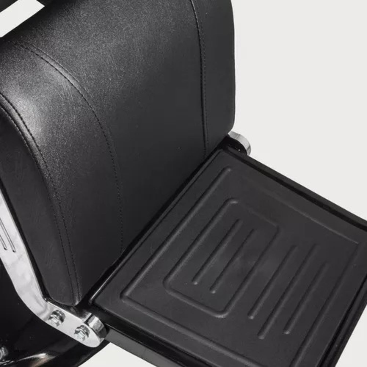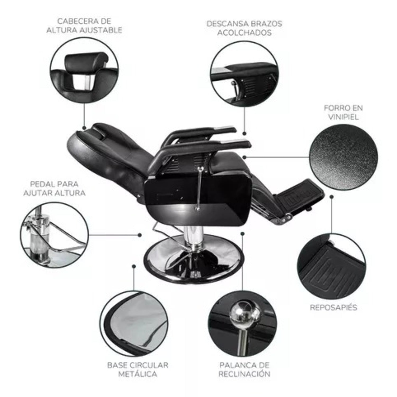 Sillón de Barbería PRO Color Negro. Diseñado para barberías, es reclinable, permite al barbero trabajar con mayor comodidad. El apoya cabeza se puede ajustar o retirar.