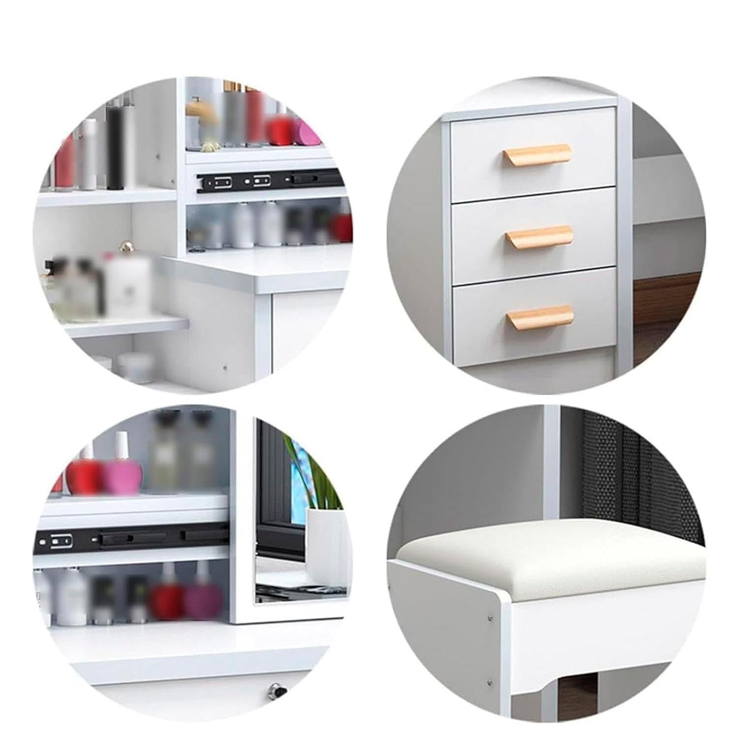 El tocador blanco con espejo y luces mantiene presionado el botón para ajustar el brillo de la luz. Puedes aplicar maquillaje u organizar tus cosméticos desde diferentes ángulos con un solo clic en el espejo.