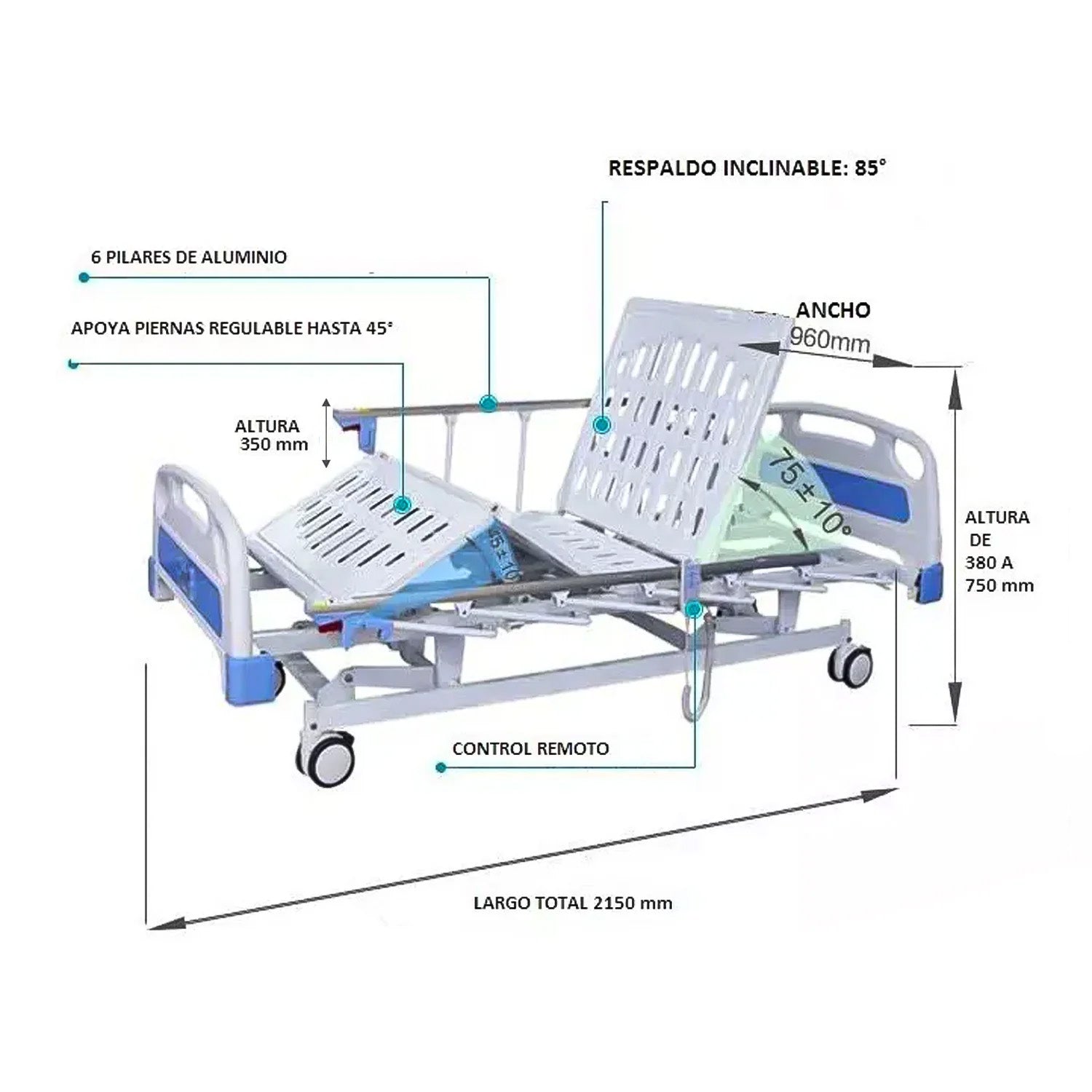 - Control remoto con panel para regular la altura, inclinación del respaldo y de las piernas.