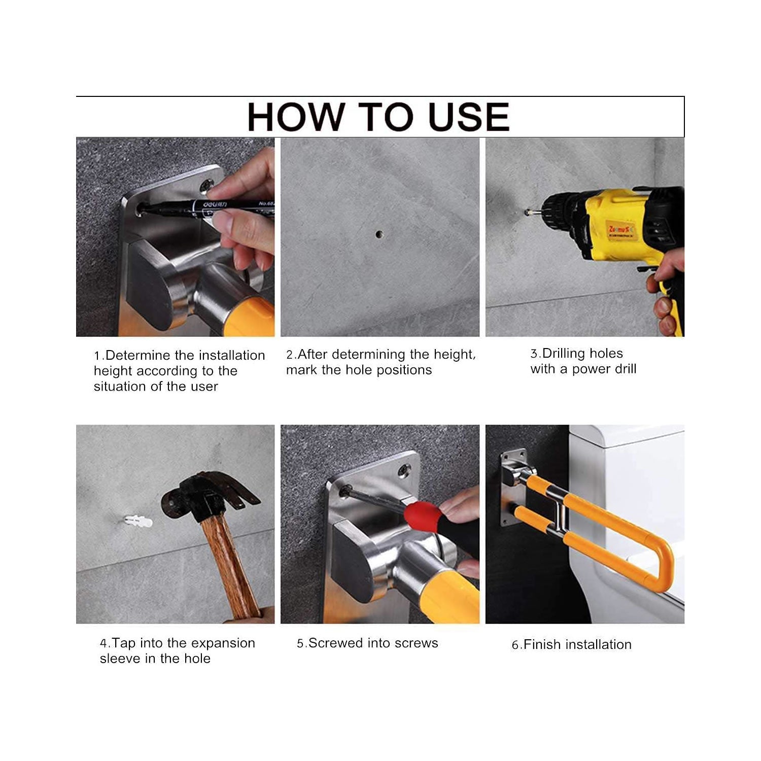 Fácil de instalar: nuestro riel para discapacitados viene con tornillos de montaje y expansiones de plástico juntas, lo que hace que sea fácilmente anclado en el suelo y la pared. Recordatorio: para soportar el límite máximo de peso, las barras de agarre deben estar ancladas a paredes sólidas.