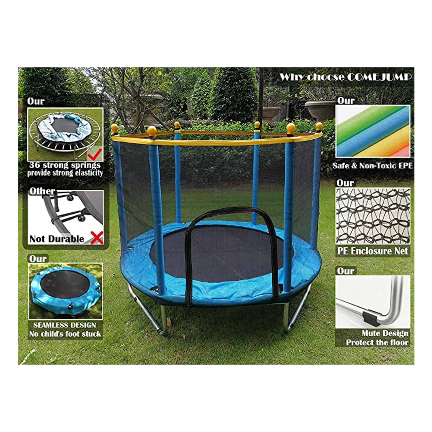 - Diseño sin costuras entre la carcasa y la alfombrilla, no hay necesidad de preocuparse por que los pies de tu hijo queden atrapados en el hueco. Seguridad y tranquilidad: la red protectora puede proporcionar una protección completa, y los niños pueden saltar de forma segura sin caerse al suelo.