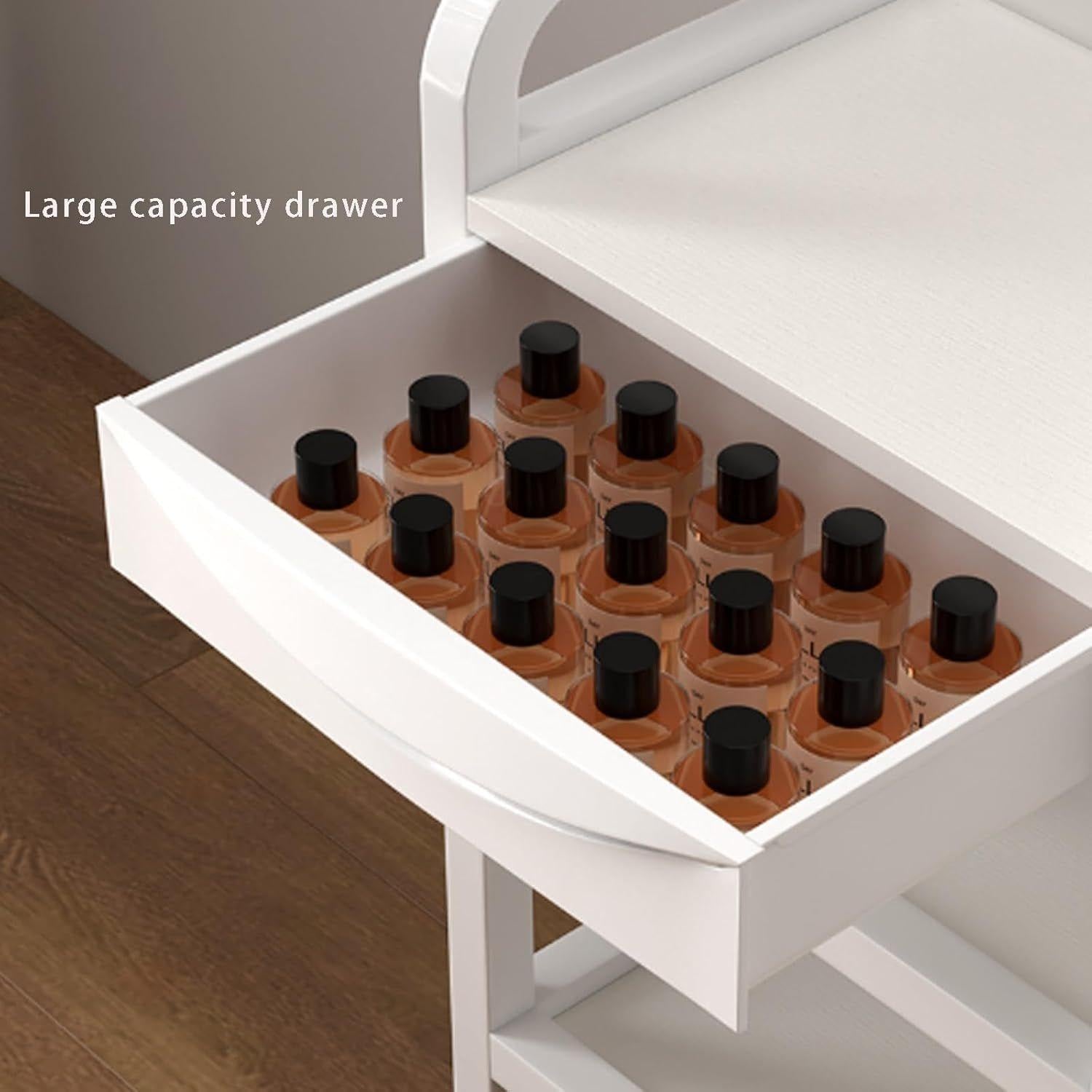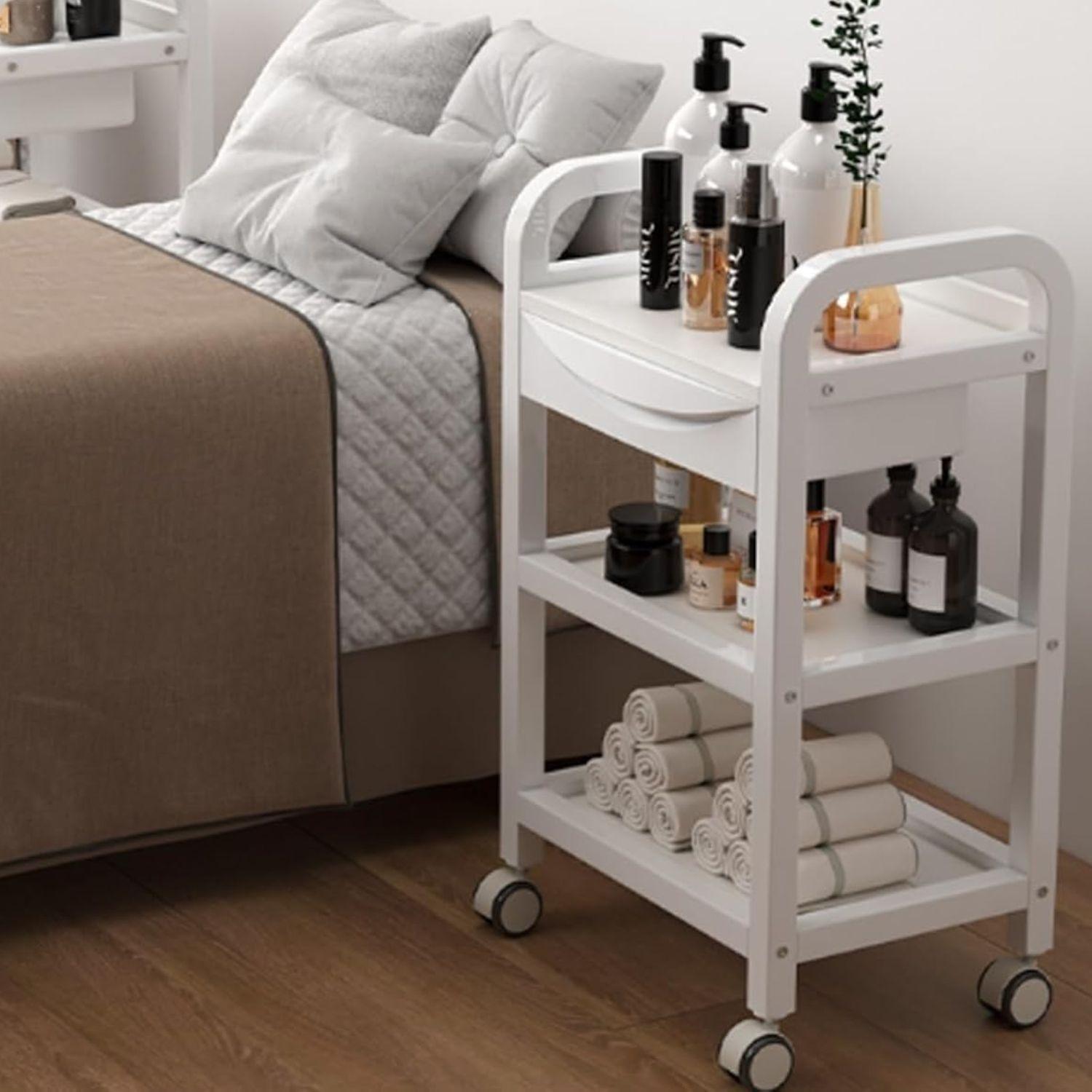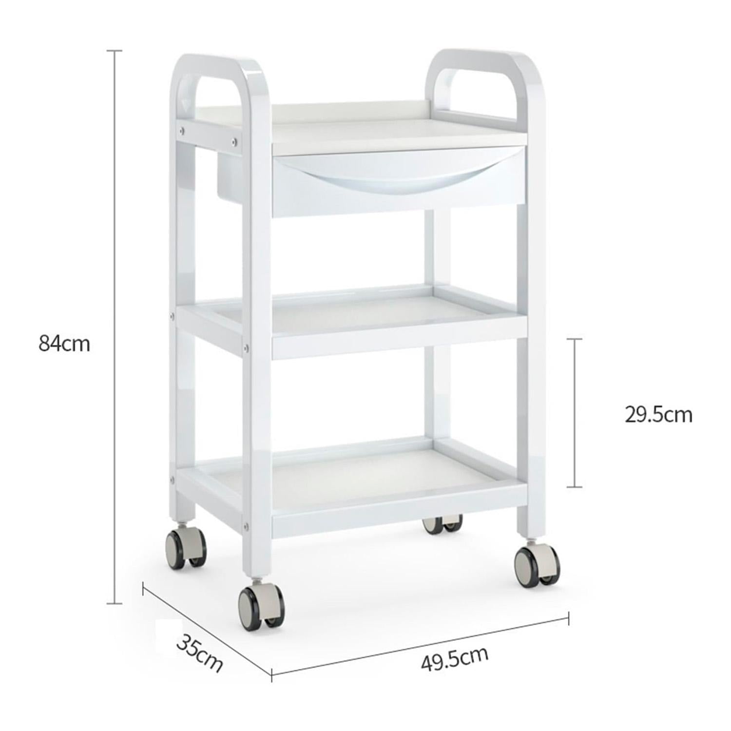 Fabricado con materiales de alta calidad, este carrito de salón combina metal robusto y tablero de densidad ecológico, libre de olores y fácil de limpiar. Su estructura gruesa garantiza una excelente capacidad de carga, siendo seguro tanto para adultos como para niños.