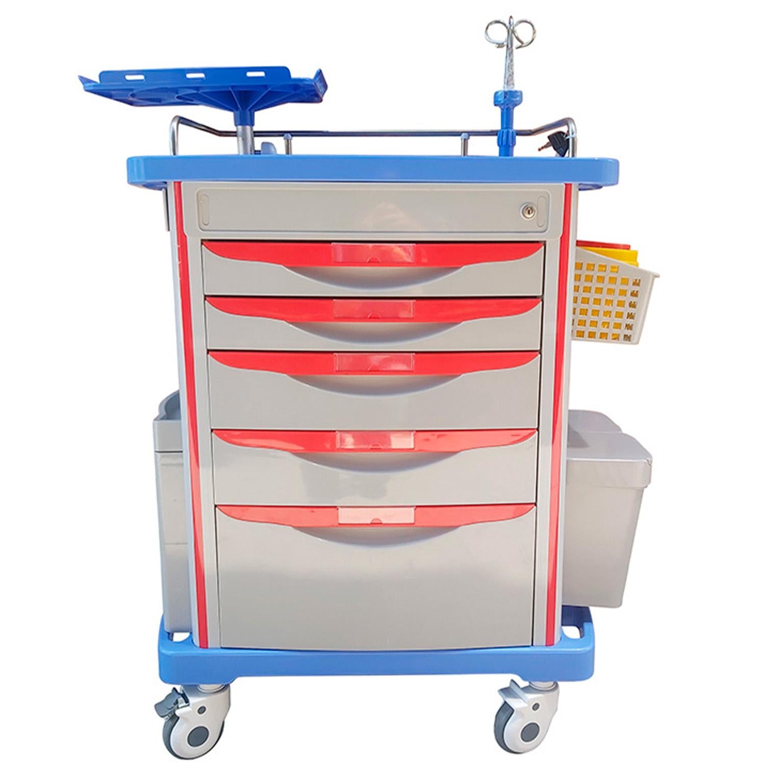Descubre el CARRO DE PARO ABS 5 CAJONES es parte del mobiliario escencial para cualquier emergencia cardíaca. Sus 5 cajones con rieles de aluminio de suave y eficiente desplazamiento permite un ordenamiento seguro y organizado para todo el personal medico que manipule este equipo, incorporando elementos indispensables para la atención de emergencia. Cuenta con una estructura resistente y duradera gracias a su fabricación en plastico ABS y estructura de aluminio que garantiza la maxima fiabilidad en los momentos de emergencia, su increible estabilidad y facil movilidad pemite una rapida reacción en los momentos criticos. Su ruedas de PVC de 4" grado médico con freno, sistema de seguridad central, superficie de PVC con ABS movible, pasamanos y manijas de aluminio más su bandeja lateral de extención de PVC hacen de este carro de paro el elemento perfecto para el personal médico.