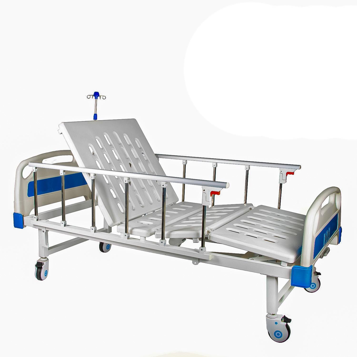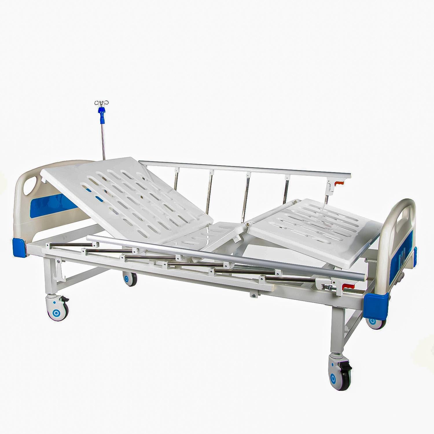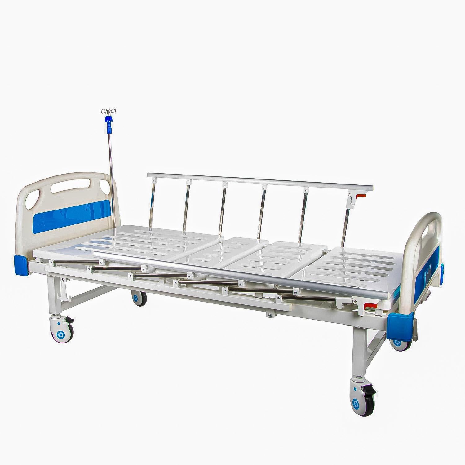 Catre clínico manual de dos posiciones con cabecera y piecera lavables y fácilmente desmontables.