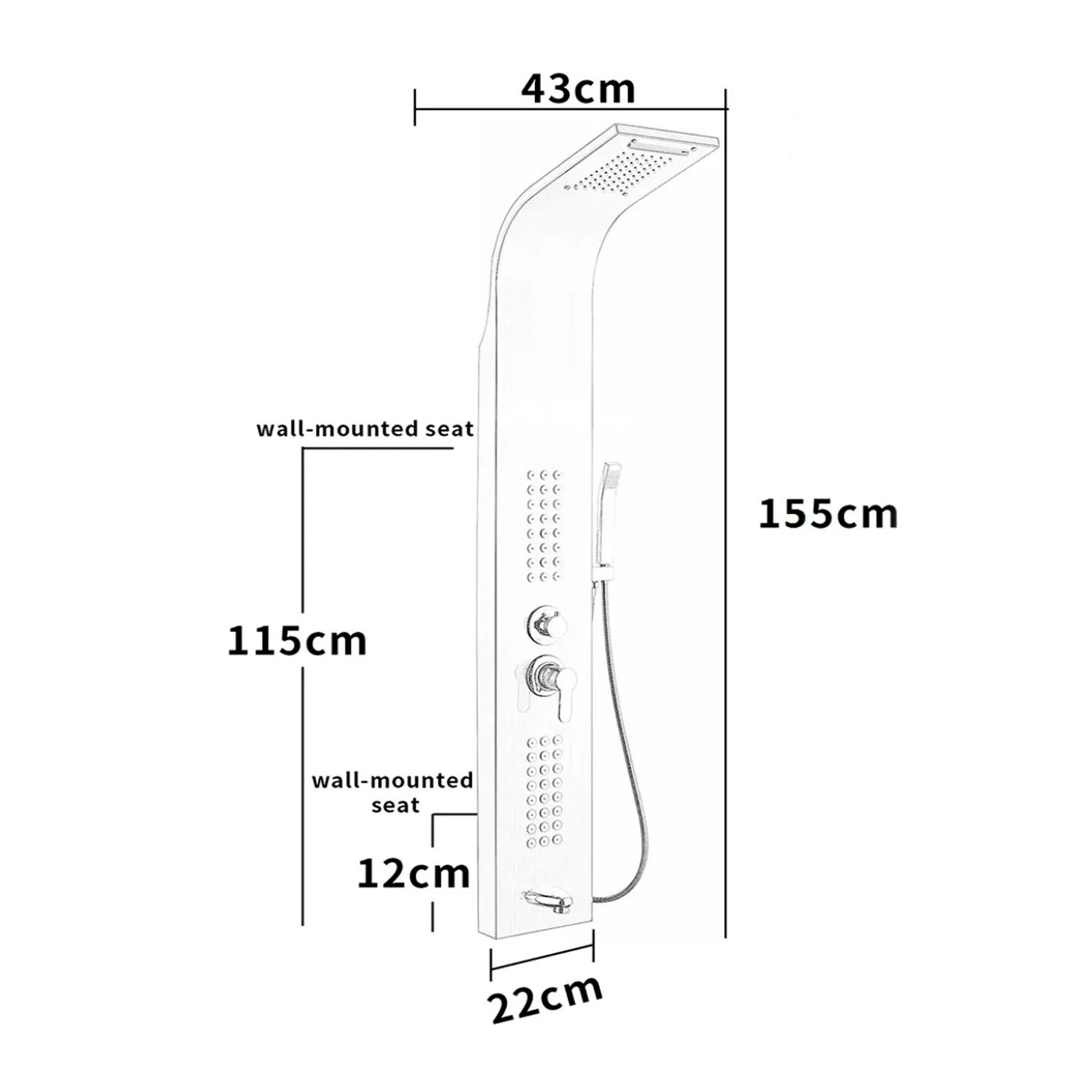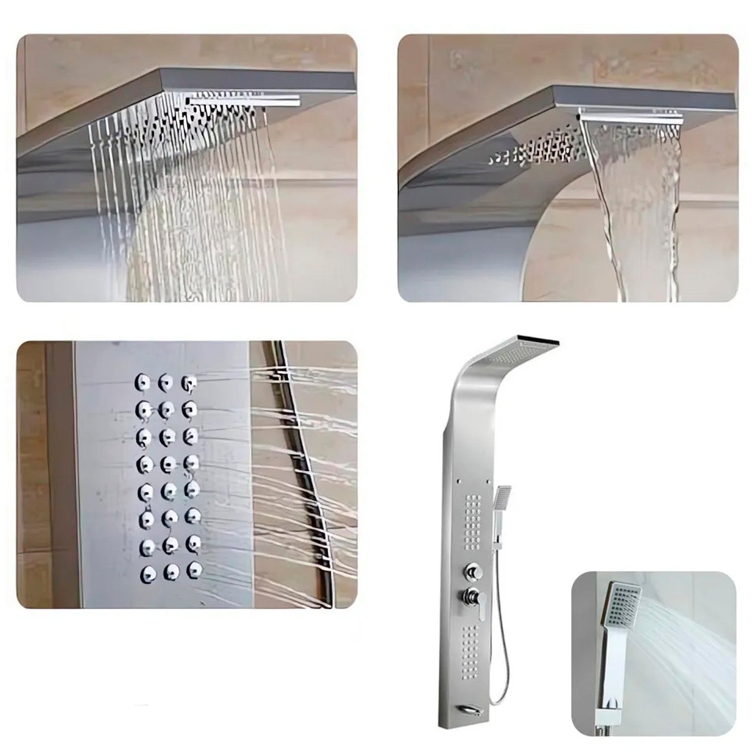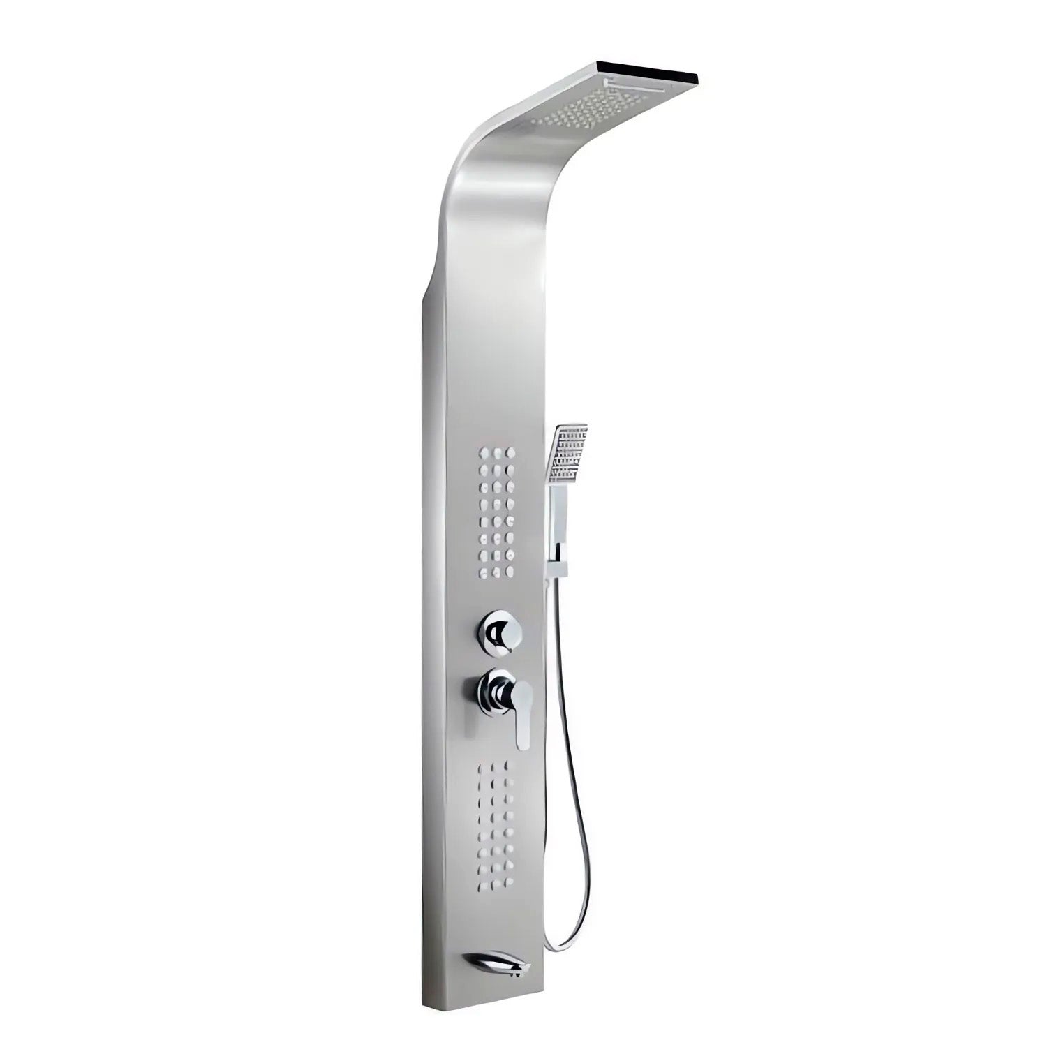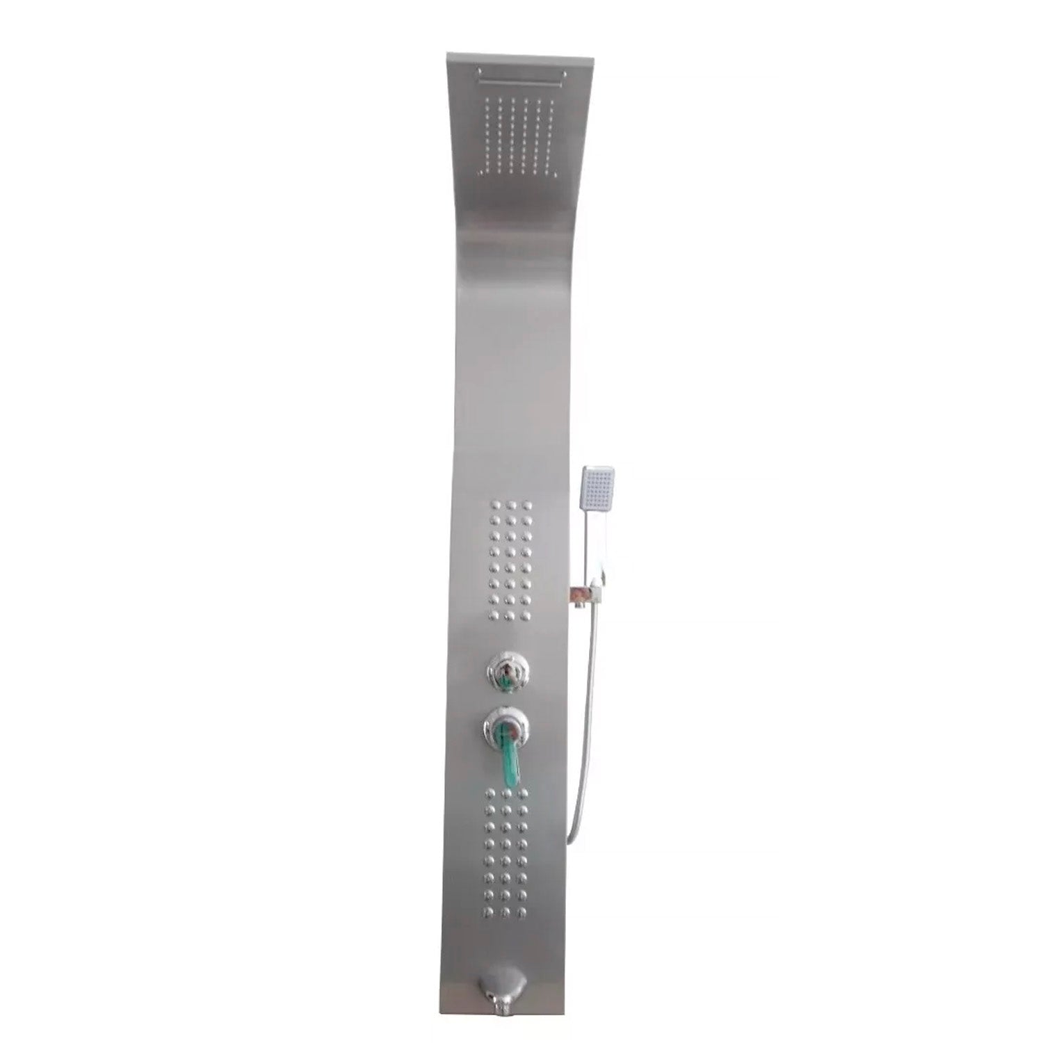 - La Columna de Ducha de Acero Inoxidable posee mango de ducha, soporte y flexible de acero. También trae incorporado a lo largo de ella tres jets para salida de agua, dos a la altura del torso y uno superior para la caída de agua desde arriba para una ducha tradicional.