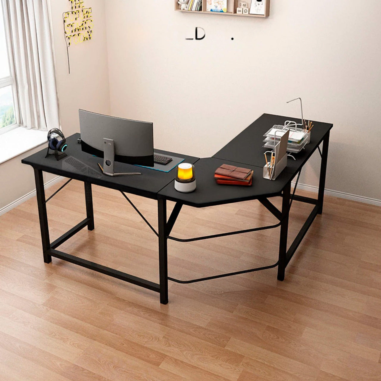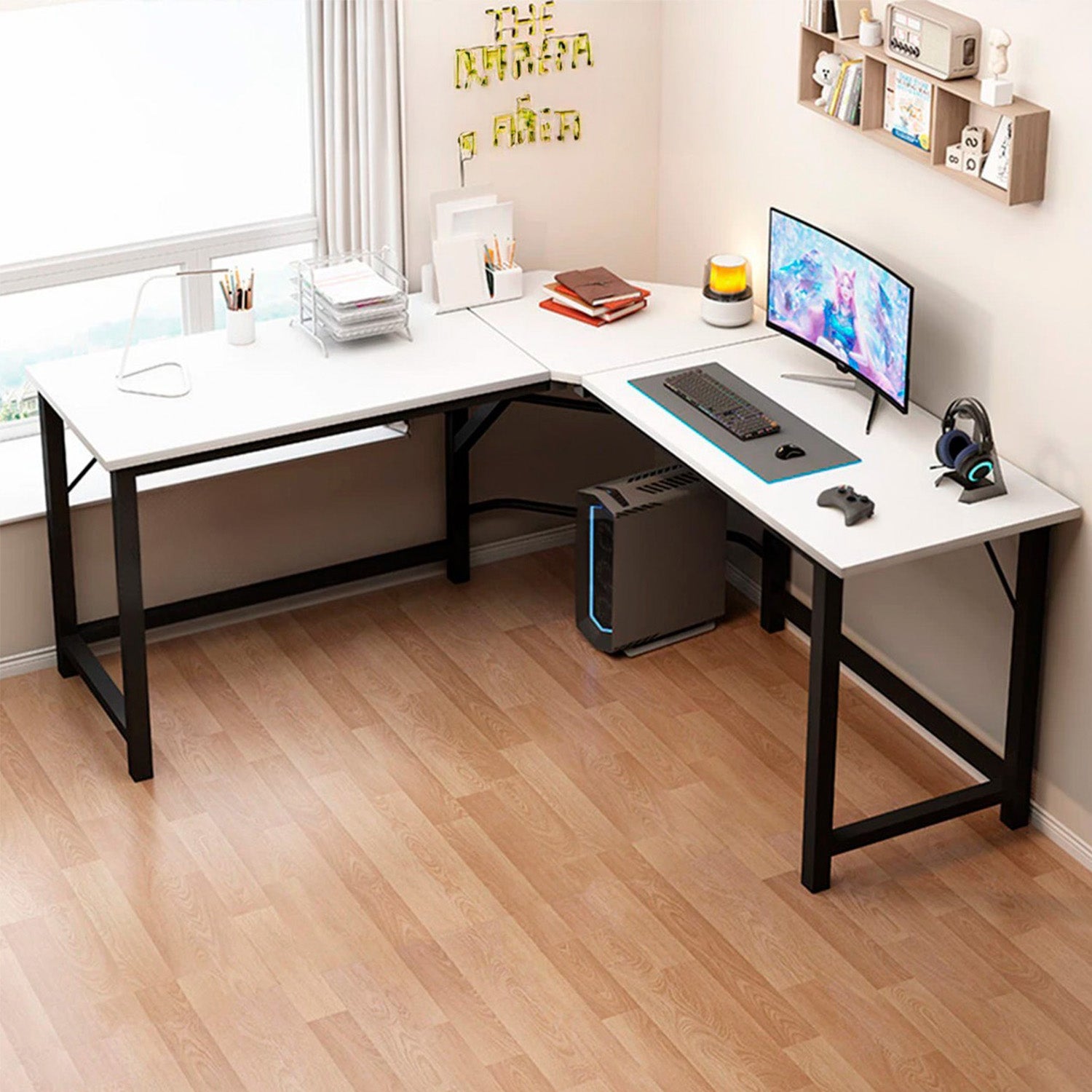 Una solución para trabajar desde casa tan espaciosa como tu escritorio de oficina, el escritorio moderno en forma de L de cm de la colección de Chic Home ofrece una gran cantidad de espacio en un espacio reducido. Este escritorio en forma de L se integra fácilmente en cualquier espacio de tu hogar, transformando incluso un rincón en tu nuevo refugio para trabajar desde casa. Al colocarlo en una esquina, su esquina tiene un corte angular que deja un espacio triangular abierto para cables que pasan por la parte trasera. Su diseño ligero permite reorganizar el espacio según sea necesario, ya que pesa solo 20 kg. Las líneas elegantes y sencillas de este escritorio para oficina en casa se traducen en un montaje rápido y sencillo. La superficie proporciona una superficie de trabajo resistente, mientras que el robusto marco de acero con recubrimiento en polvo aporta resistencia y durabilidad. Este escritorio esquinero presenta detalles de refuerzo modernos y elegantes, que además aportan resistencia en los puntos clave de carga. Puedes estar seguro de que este escritorio soportará tu carga de trabajo. Se puede aumentar la altura de cualquiera de las patas para compensar desniveles en el suelo gracias a los deslizadores ajustables.