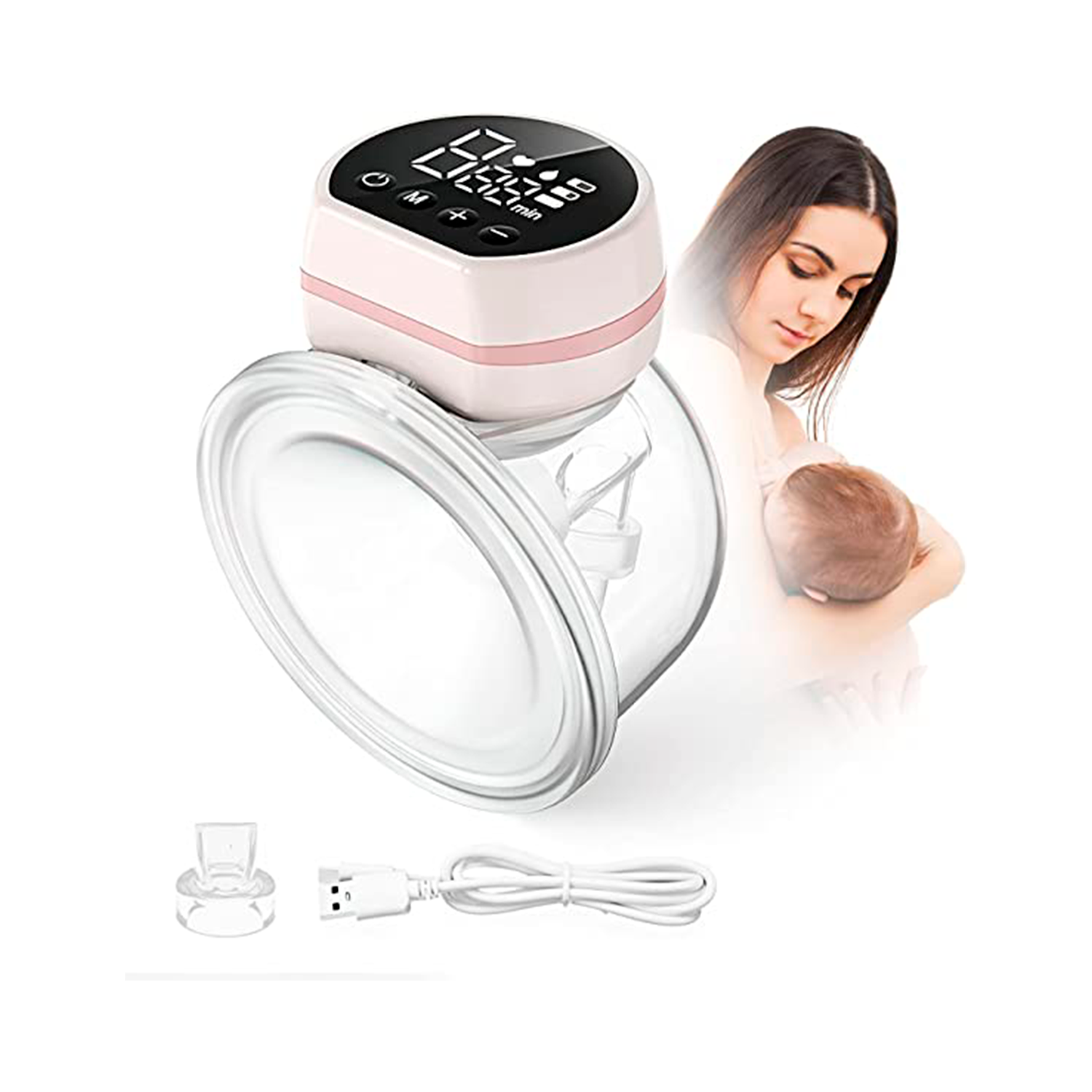 - Incluye: Un saca leche, cable Usb, bolsa y un repuesto de tapón de cierre.