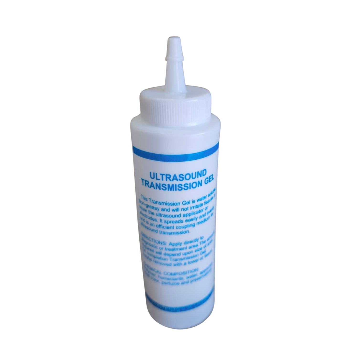 Instrucciones de uso: Aplicar suficiente cantidad en la piel del paciente y tambien en el transductor correspondiente.
