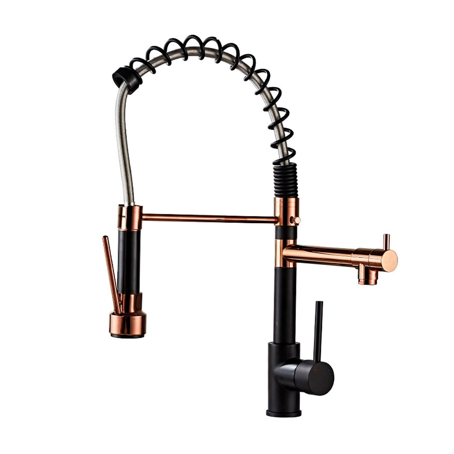 GRIFO ABATIBLE: El caño giratorio de 360 grados de alto arco para acceso completo al fregadero y espacio libre superior, el rociador extraíble garantiza una alta presión y al mismo tiempo ahorra agua.