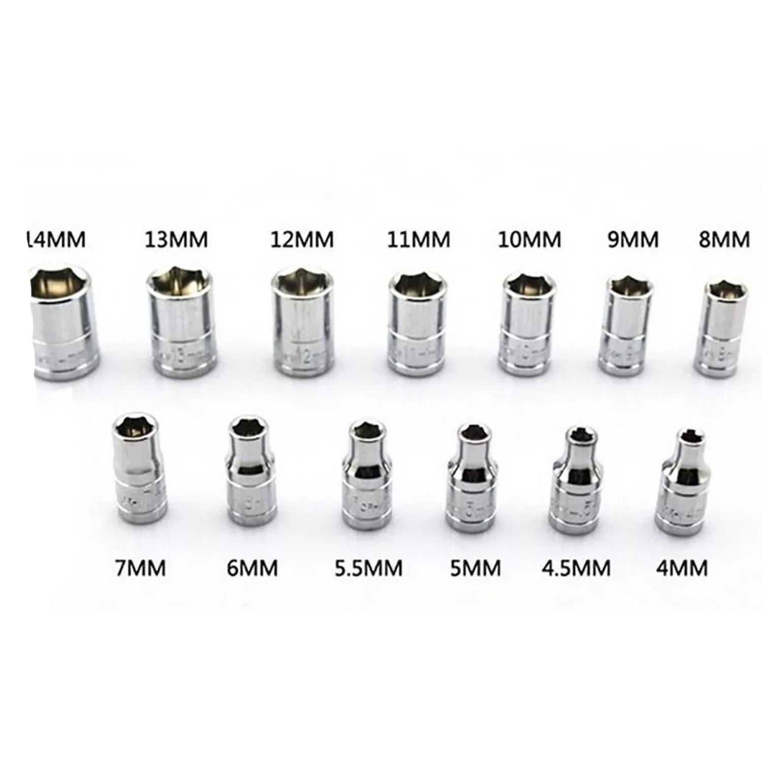 • 10 Bocallaves hexagonales de la serie 1/4" (4, 5, 6, 7, 8, 9, 10, 11, 12, 13 mm)