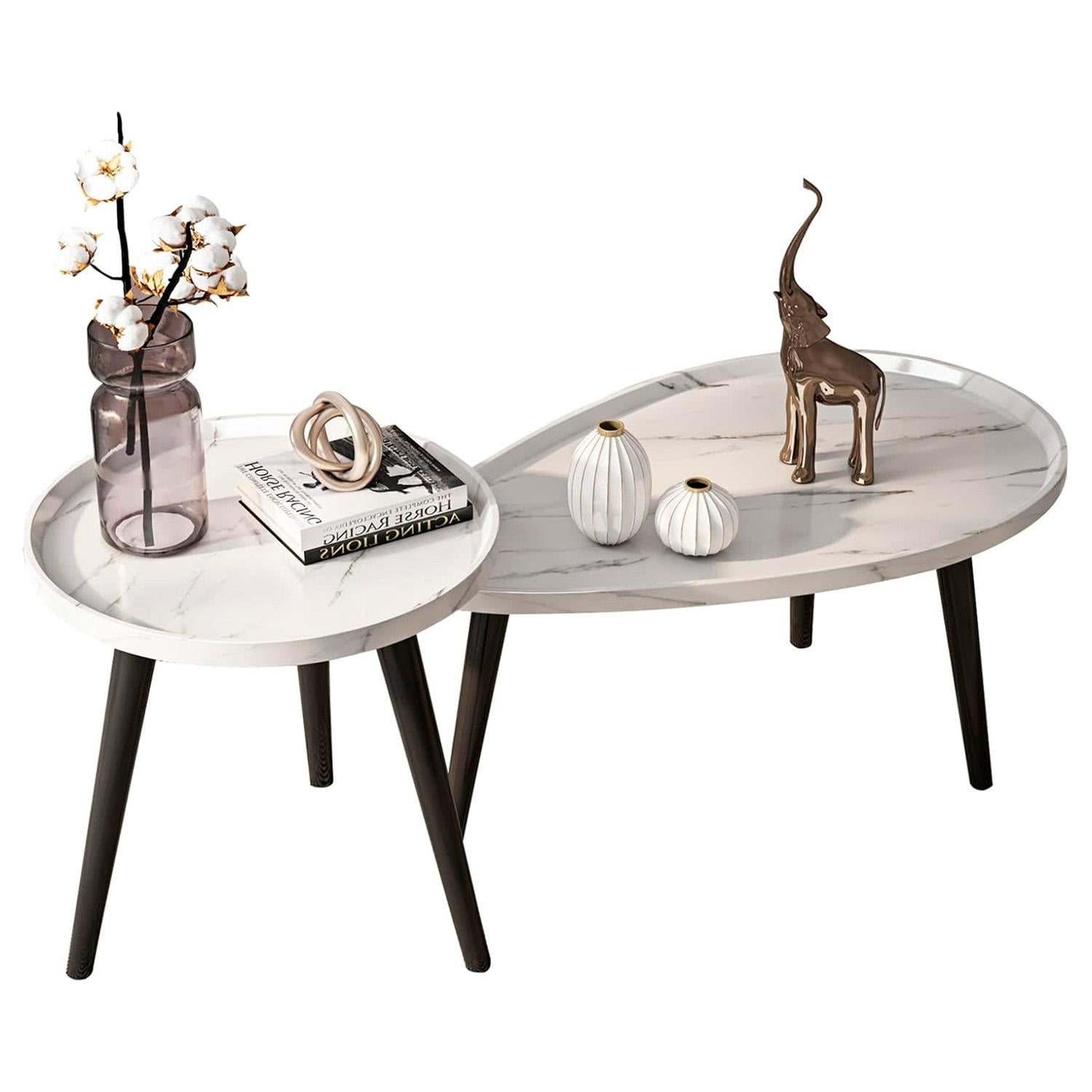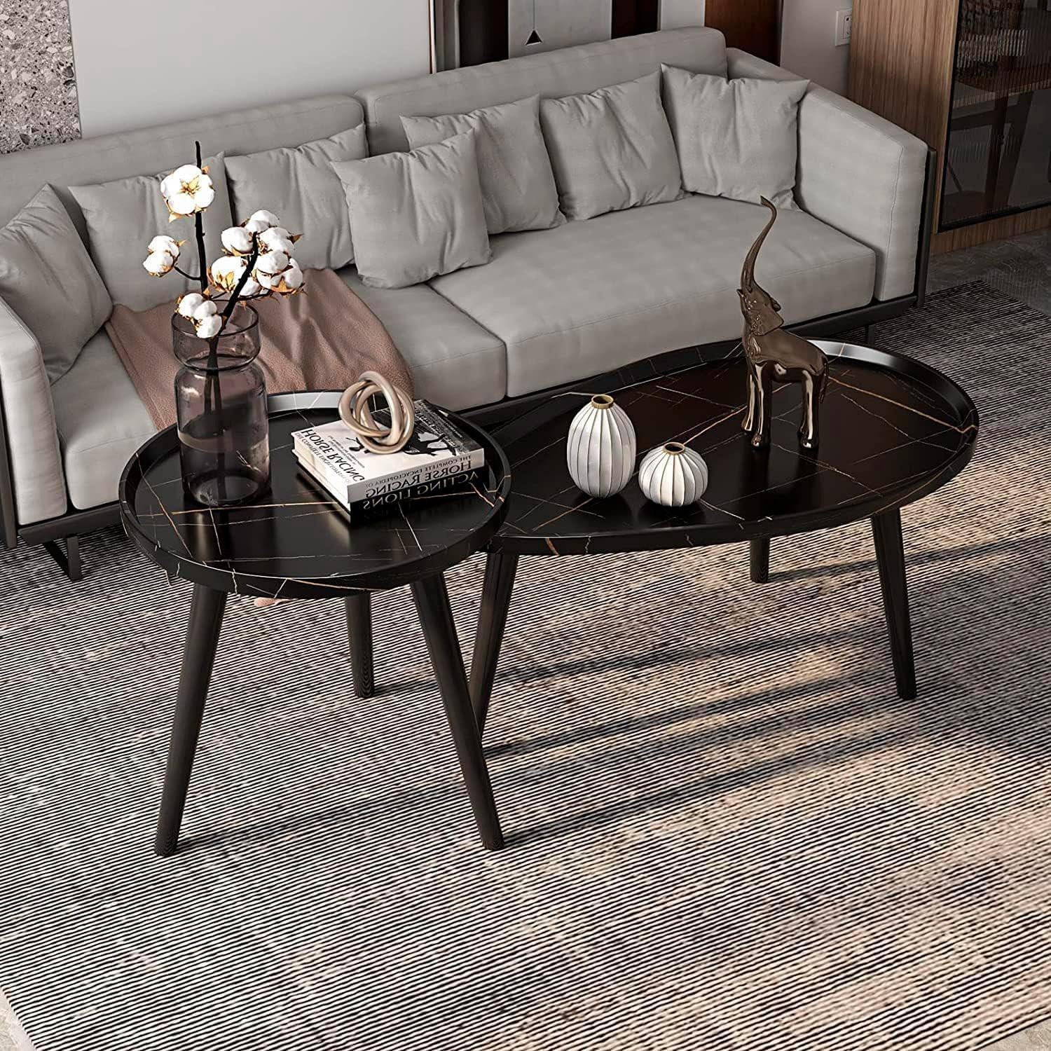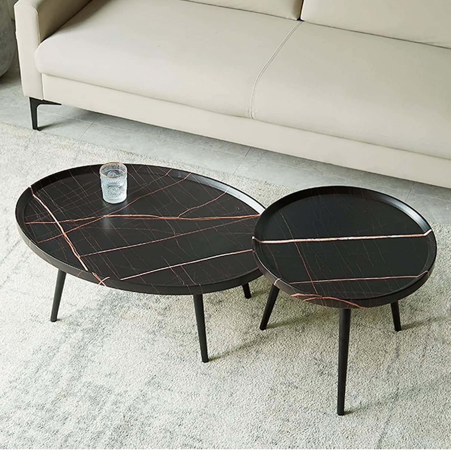 Decoración elegante: la mesa doble anidada aporta un sentido artístico diferente a su sala de estar u oficina. Los colores clásicos nunca pasan de moda, fácil de controlar diferentes estilos de sala de estar.
