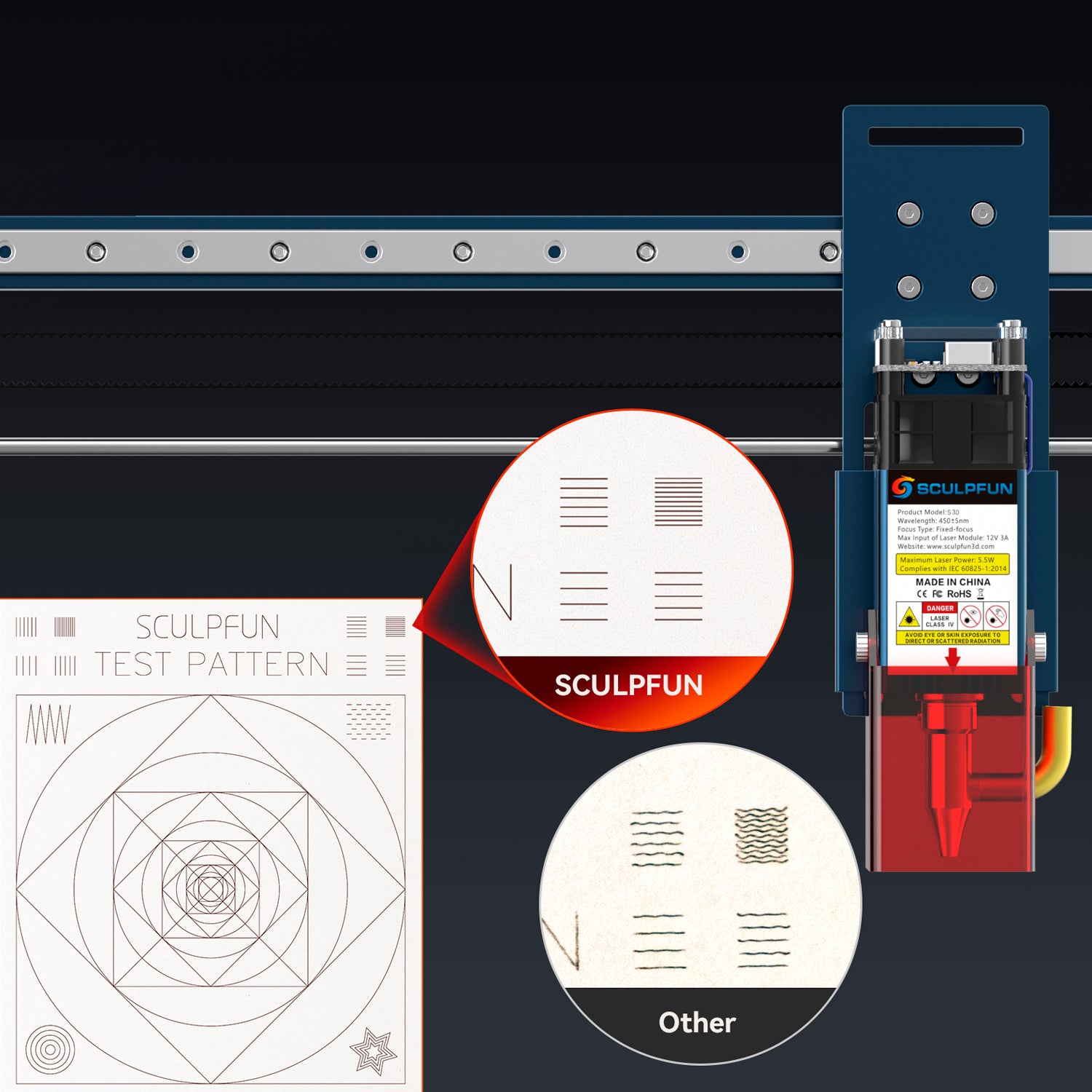 La Kit Grabadora Láser SCULPFUN S30 5W es ideal para trabajos de precisión y personalización de alta calidad. Cuenta con asistencia de aire inteligente para cortes más limpios, lente reemplazable de larga duración, área expandible de grabado y eje X con riel deslizante para máxima precisión. Ofrece un enfoque láser de 0.06x0.06 mm, compatible con madera, acrílico, cuero, cerámica, acero y más. Incluye compresor de aire y protección ocular desmontable, garantizando seguridad y eficiencia en cada uso.