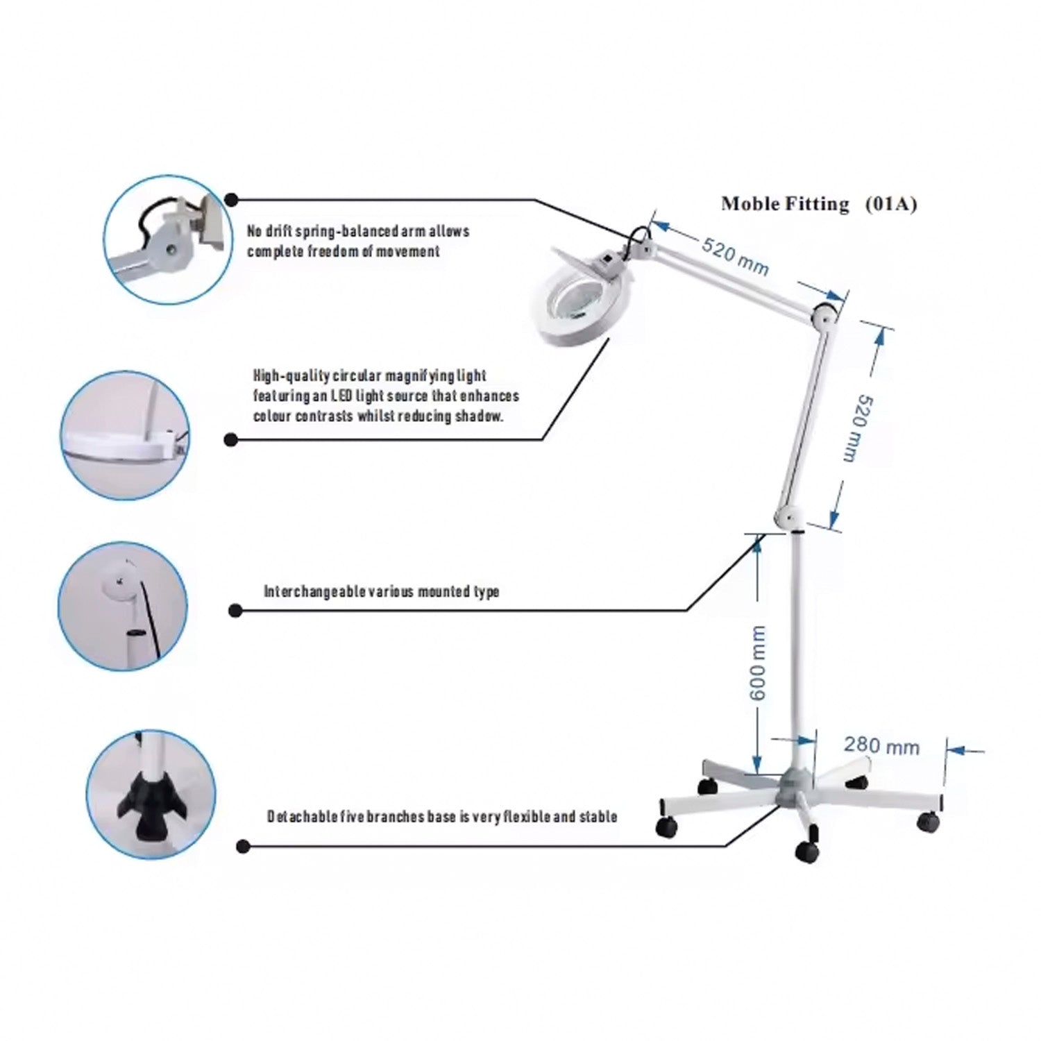 Soporte de posicionamiento libre: brazo de soporte de marco de metal, el diseño de brazo flexible le permite colocar el LED según sea necesario y seleccionar el mejor ángulo de iluminación. Brazo ajustable para ajuste de altura; cabeza giratoria para facilitar su uso; sin luz de sombra, sin disipación de calor.