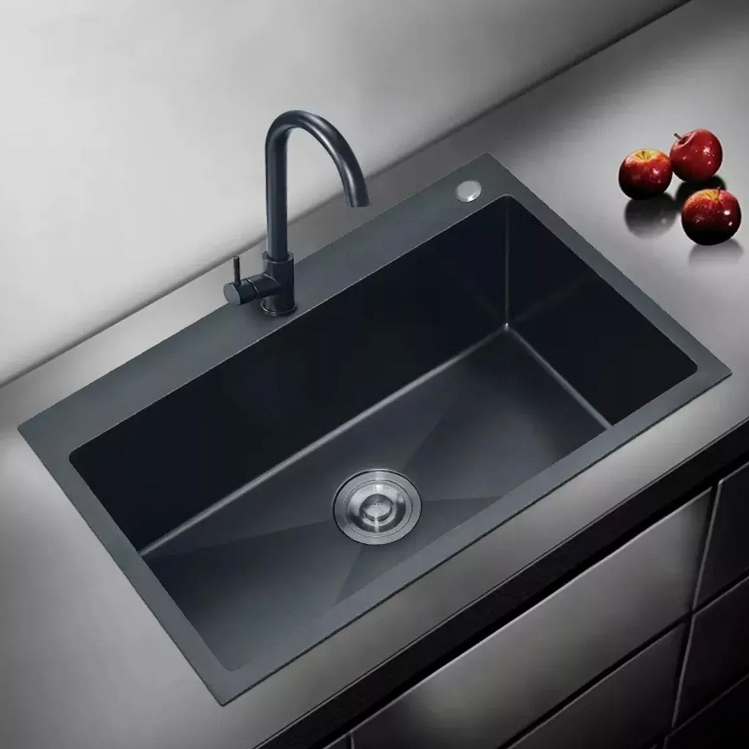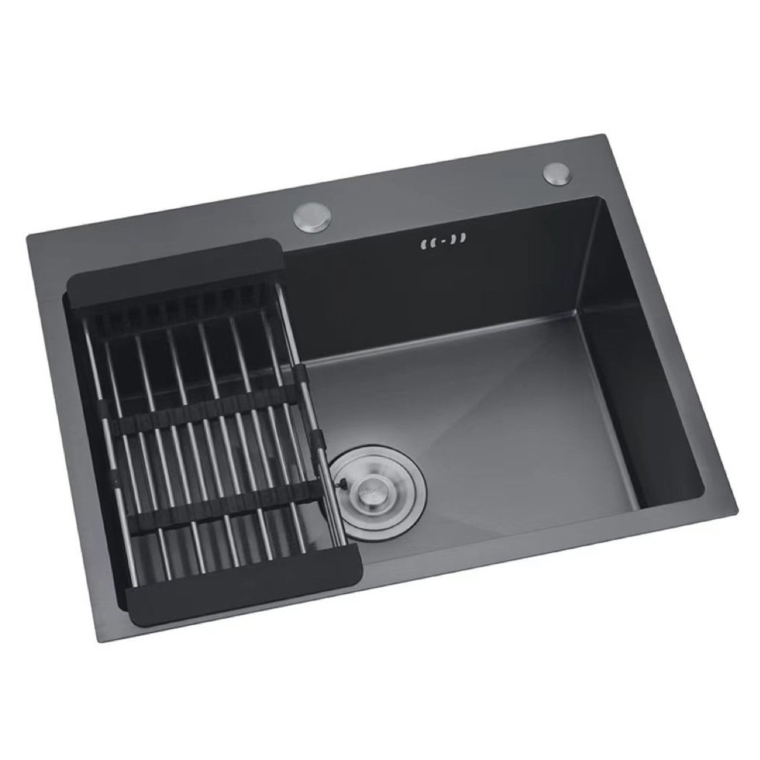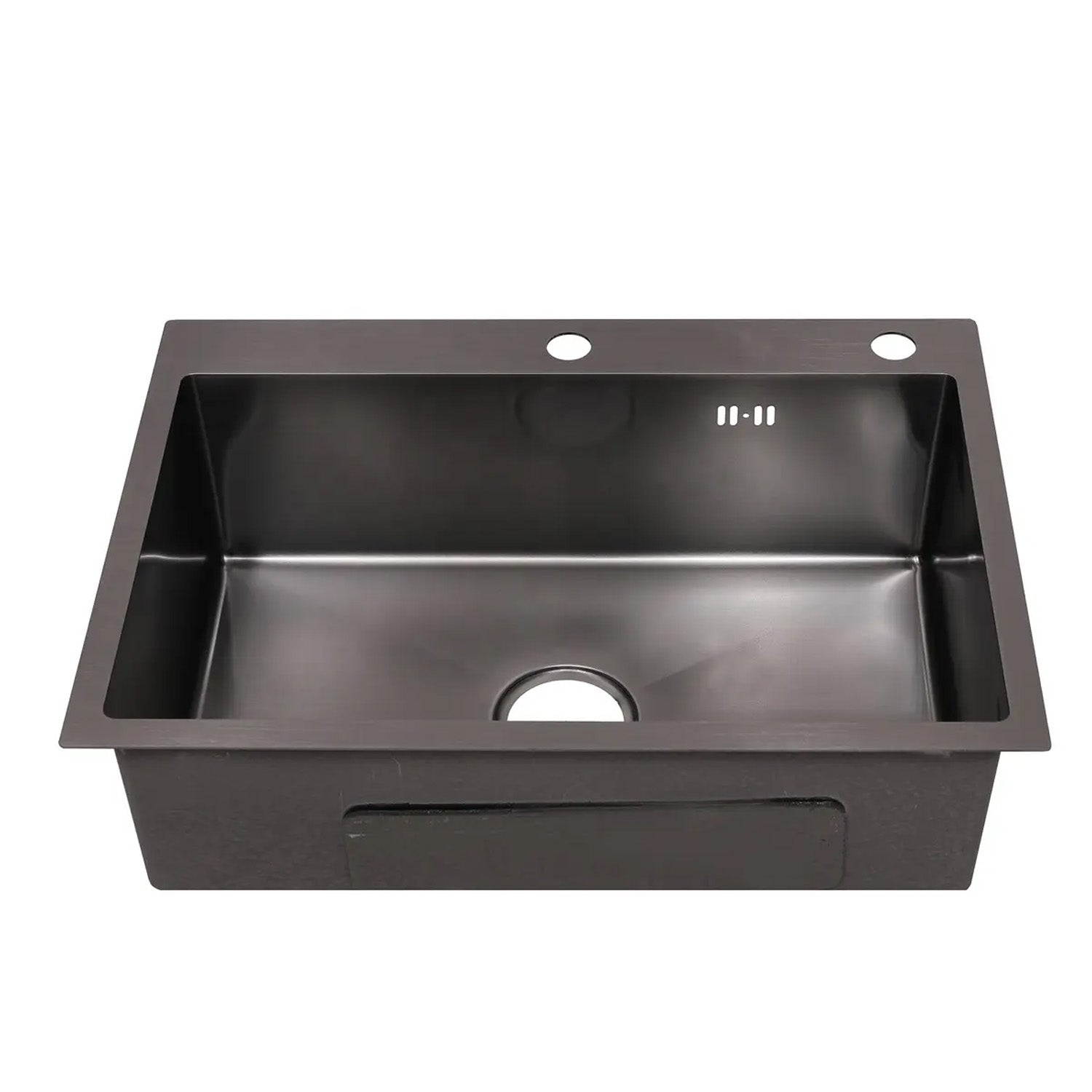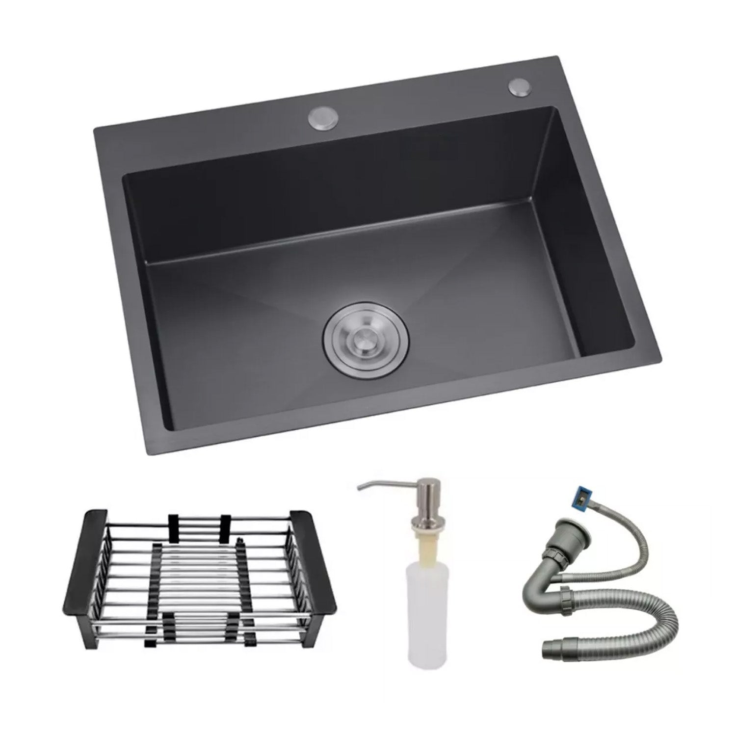 Deslumbra en tu cocina con nuestro lavaplatos de color negro de lujo. Elegancia moderna y Espacioso en un solo lavaplatos con un acabado increíble. Características del producto: - Instalación empotrada sobre cubierta, a nivel, bajo cubierta. - Acero Inoxidable SS-201 Pulido - Superficie Inferior Pintada - Espesor: 2 mm - Medidas externas: Largo: 55cm Ancho: 43cm Pofundidad de Bowl (batea): 20 cm - Medidas Internas de Bowl : 50x35mm - Incluye recipiente Metalico atrapa residuos dentro de desague - Con rebalse (para evitar derrame de liquidos) - Incluye un orificio para monomando - Incluye un orificio para dispensador - Incluye Ganchos, Desagüe con rebalse de3 1/2" - Incluye Canasto ajustable escurridor de loza o alimentos - Incluye dispensador de Jabon en acero inoxidable. -No incluye Llave Monomando
