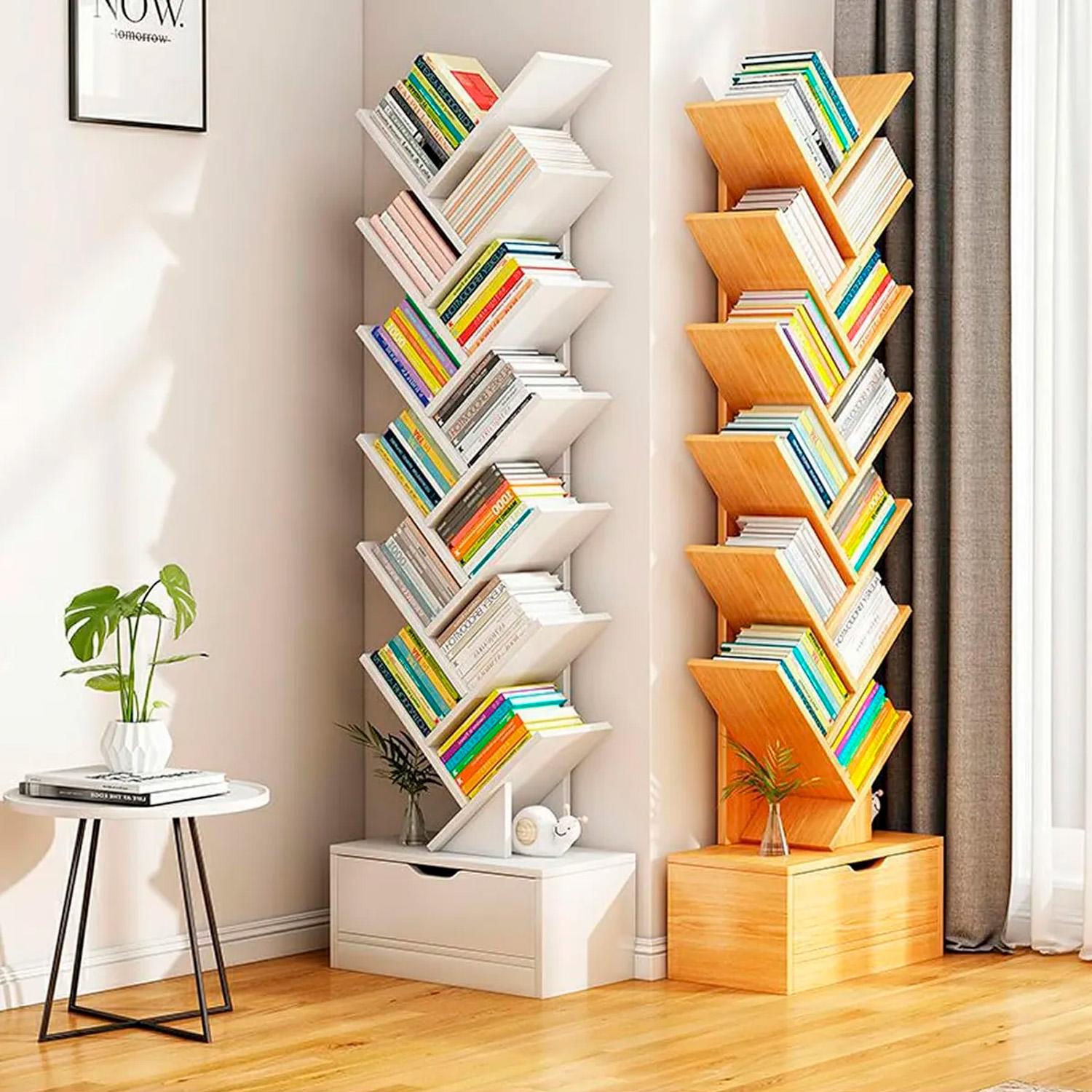 Librero arbol superficie de madera es resistente al desgaste y suave, fácil de limpiar de forma rápida y limpia. Para la limpieza y el mantenimiento diarios, simplemente límpielo con una toalla húmeda para mantener la librero organizador limpia.