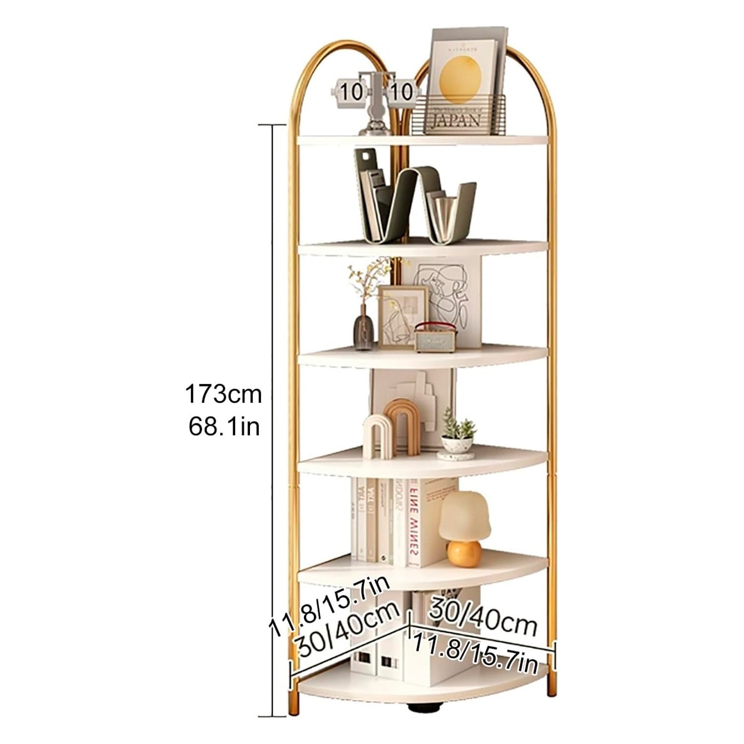 Diseño de moda: el estante esquinero de 6 niveles combina el encanto de los estilos de muebles clásicos y modernos. Satisfaga sus necesidades y cree un ambiente tranquilo y fresco para su habitación. Un muy buen estante que combina propósitos decorativos y funcionales.