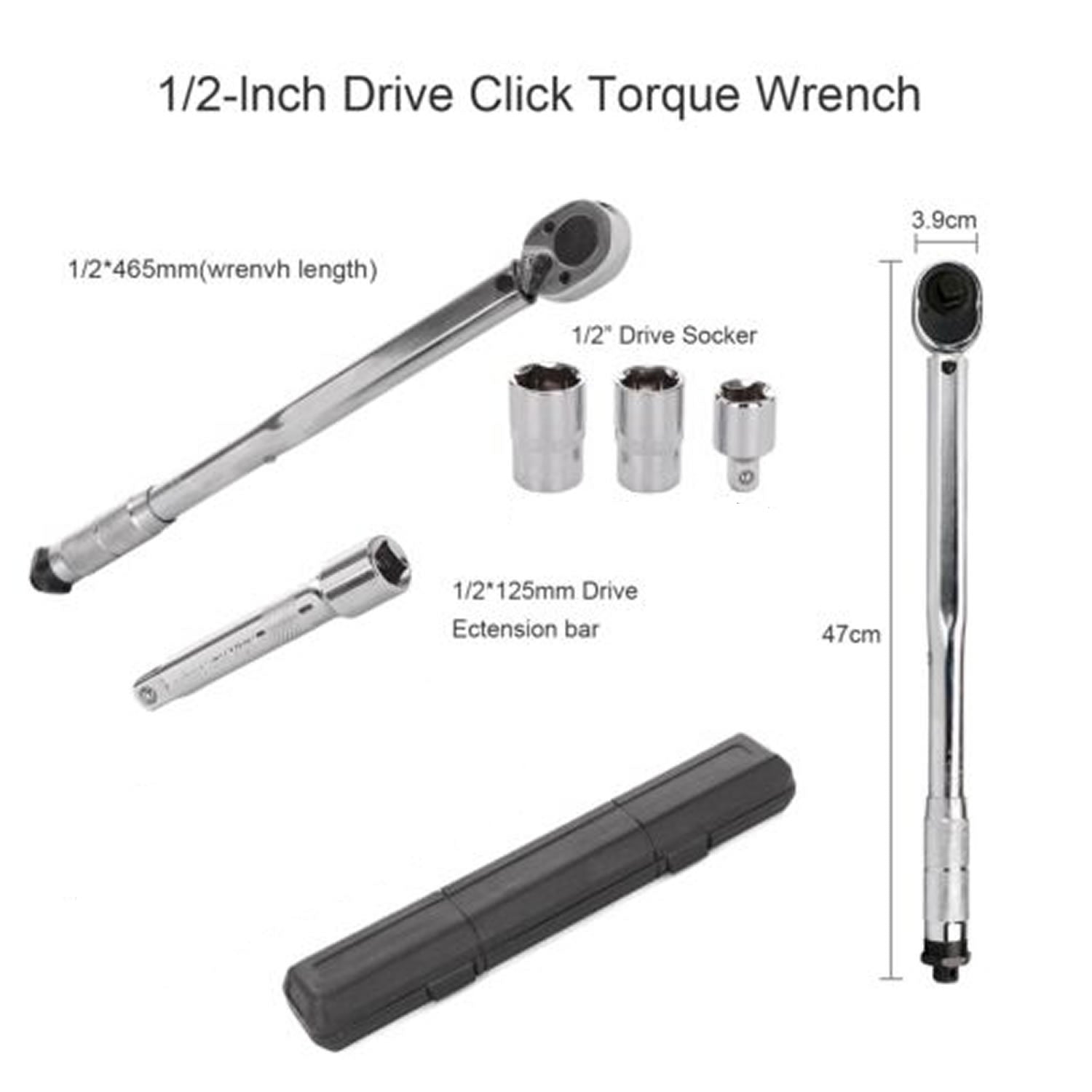 Llave Torque Torquimetro 1/2 - 28-210nm + Dados + Extension