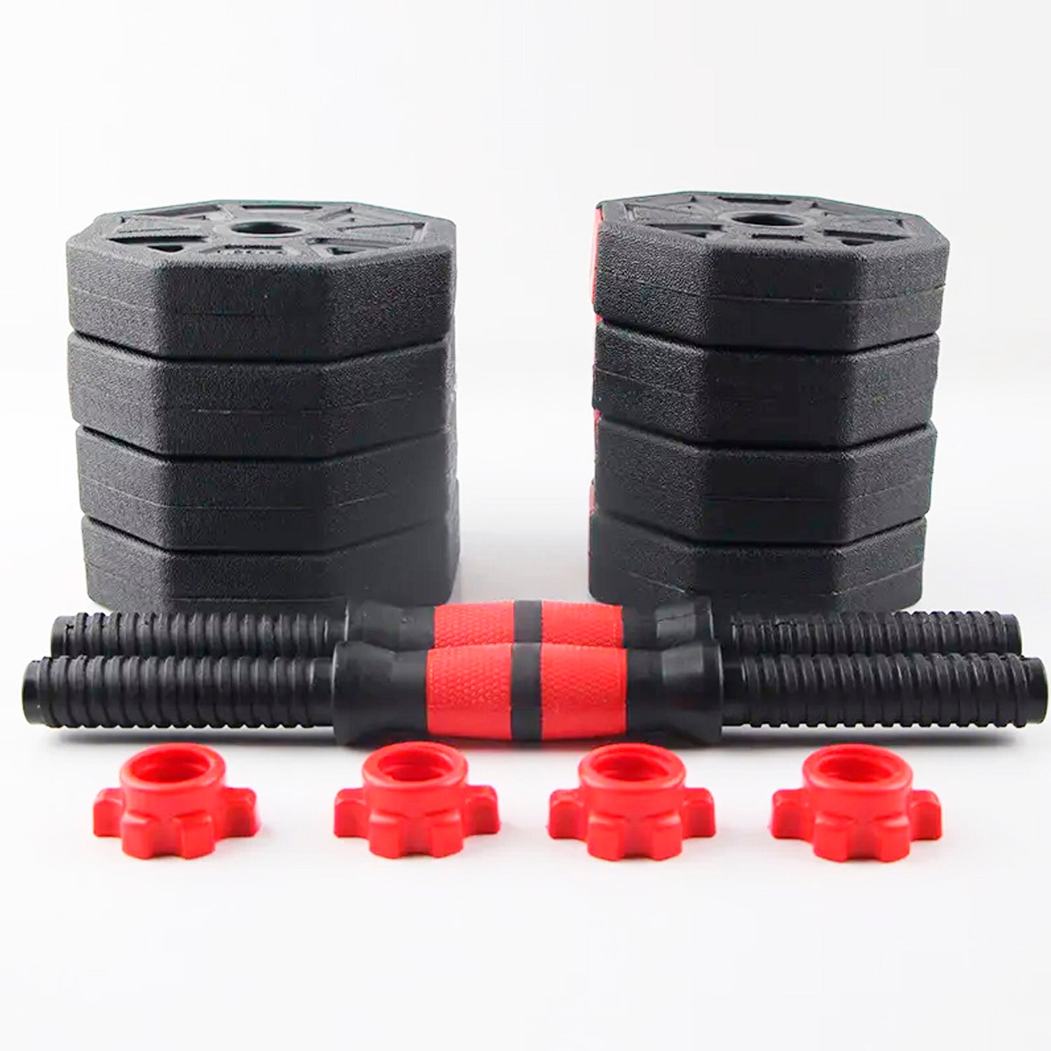 - Mancuernas Ajustables Set 10kg 3 En 1 + Barra + Kettlebell