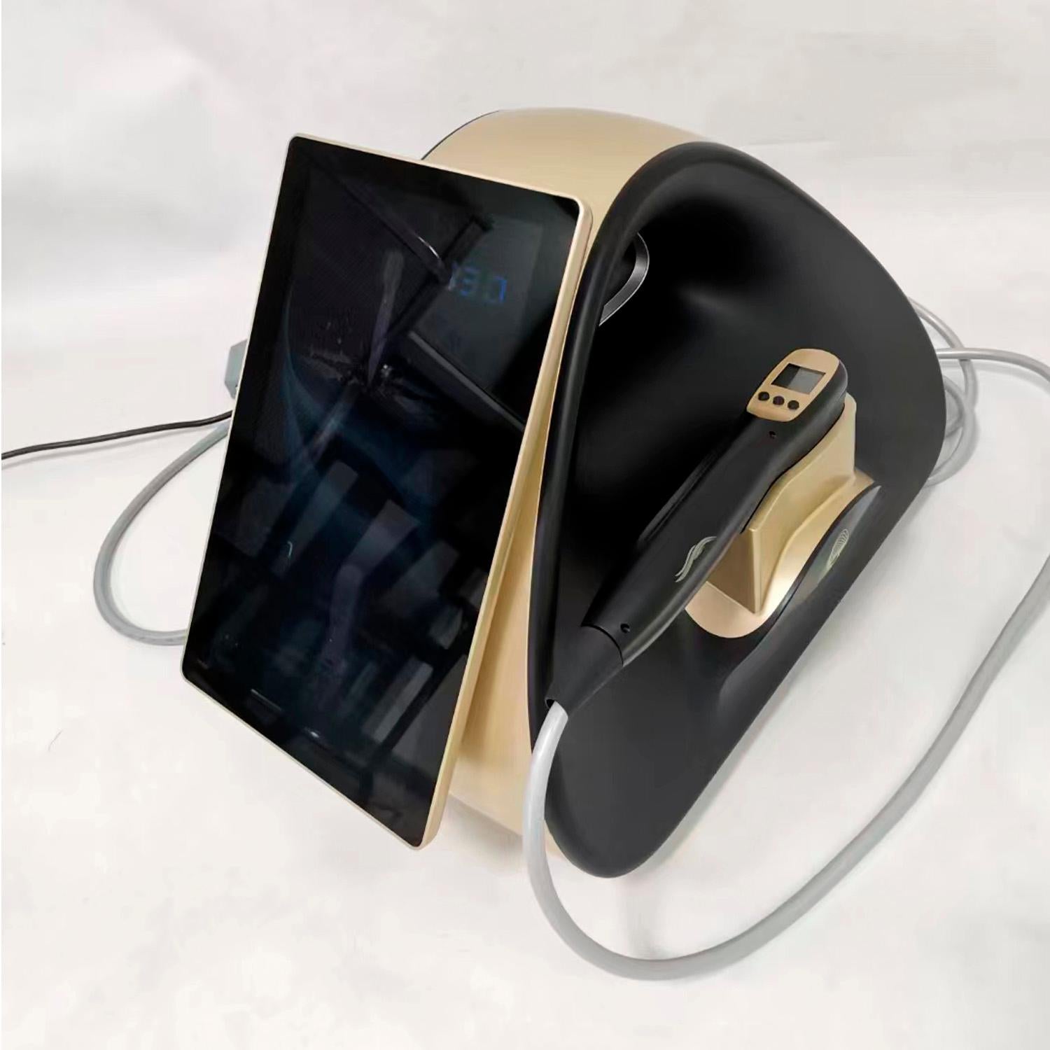 Este avanzado dispositivo de belleza combina tecnologias HIFU multilíneal (ultrasonido enfocado de alta intensidad) y Lipo con RF.