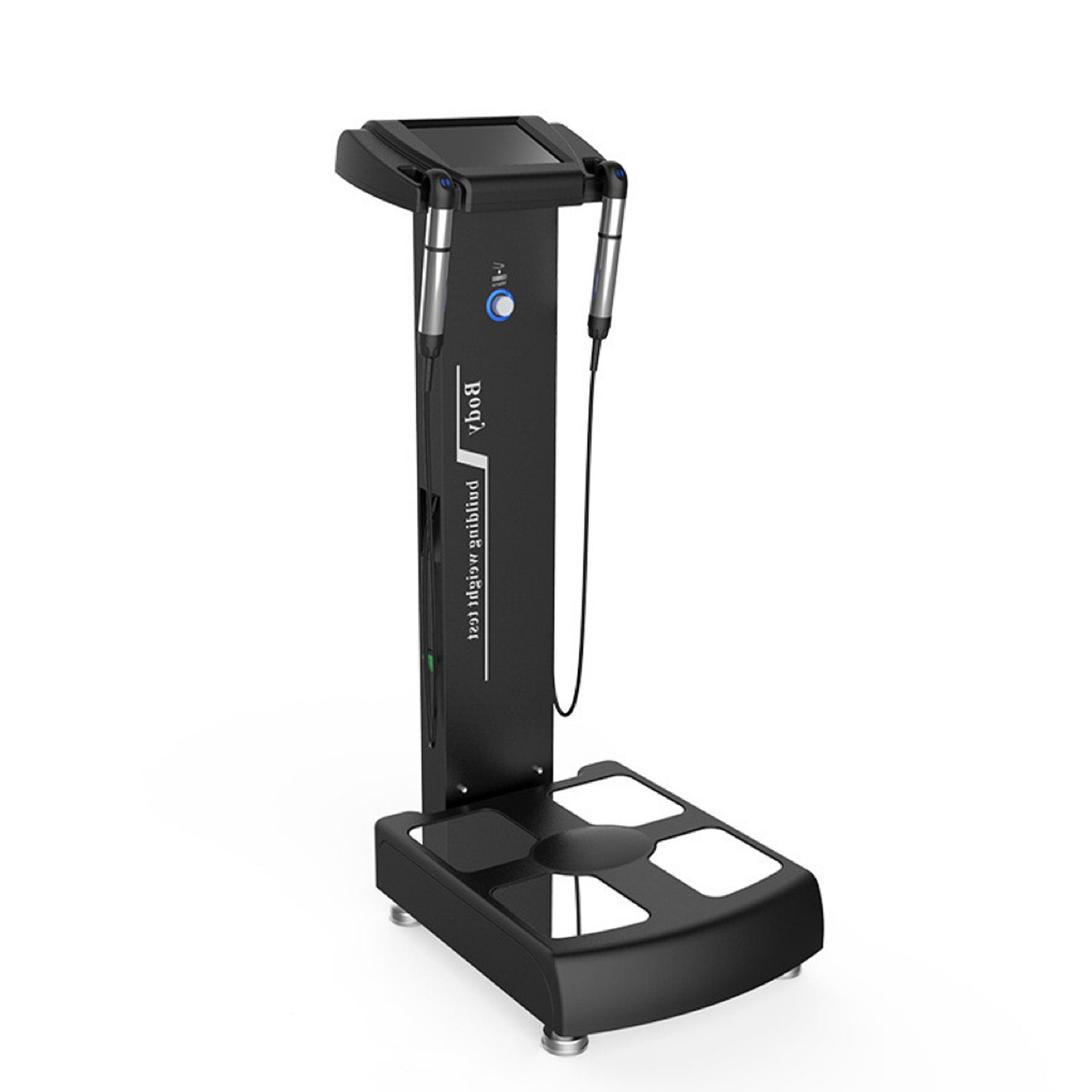 Es un equipo analizador corporal bioimpedanciómetro que permite evaluar la cantidad de grasa corporal, visceral, porcentaje de agua, cantidad de sal, parámetro de IMC y cantidad de proteína o masa magra. El análisis es realizado por segmento, brazos, piernas, abdomen y cuerpo completo, permitiendo obtener una lectura específica de la composición corporal de cada persona.