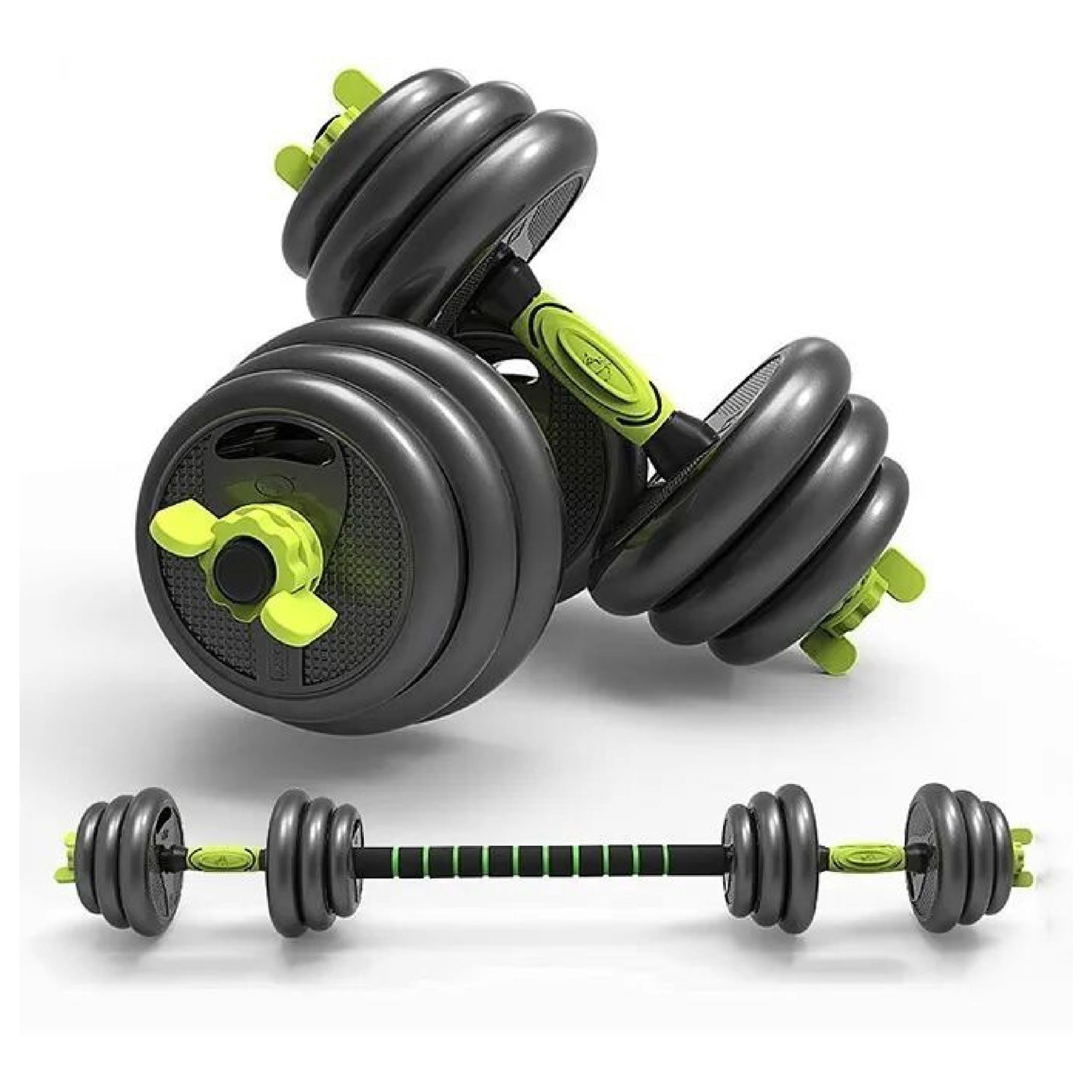 Set 2 Mancuernas ajustables de 30 kg con 15 discos en total , convertibles en barra con peso, ABS roller para zona abdominal o mancuernas separadas.