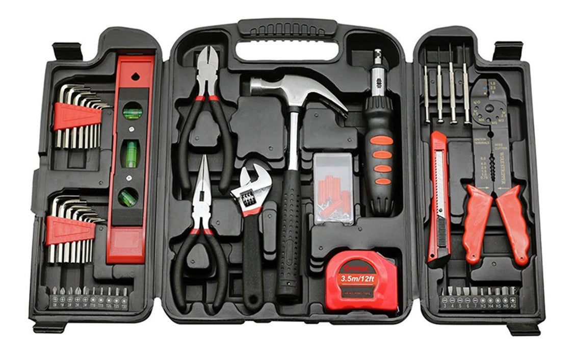 El Juego de herramientas esta compuesto por las herramientas manuales más populares para los trabajos de mantenimiento, reparación, y bricolaje diario en el hogar, la oficina, y el taller. Ponga manos a la obra con la caja de herramientas martillar, atornillar, medir, colgar cuadros, cortar cables, y mucho más. Todo en un práctico maletín de almacenamiento. Las herramientas están manufacturadas en acero cromado de alta calidad para evitar corrosión y oxidación.
